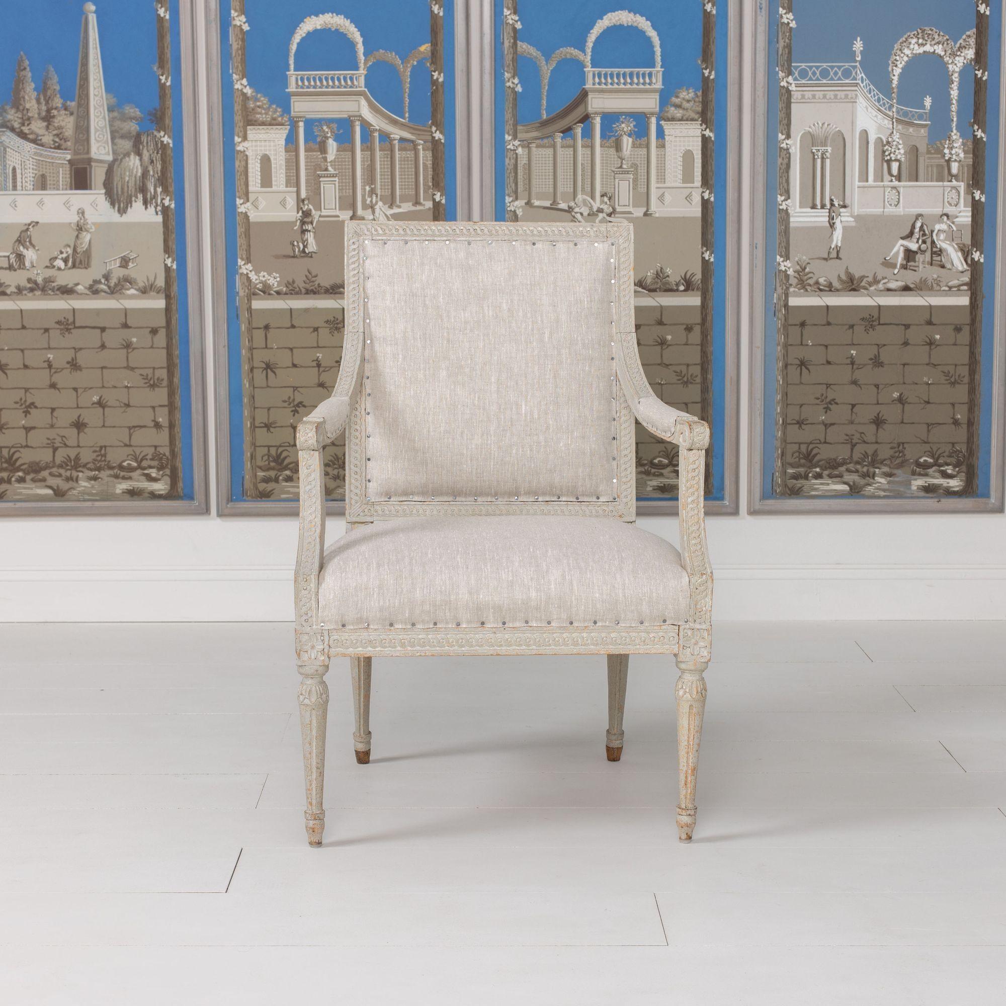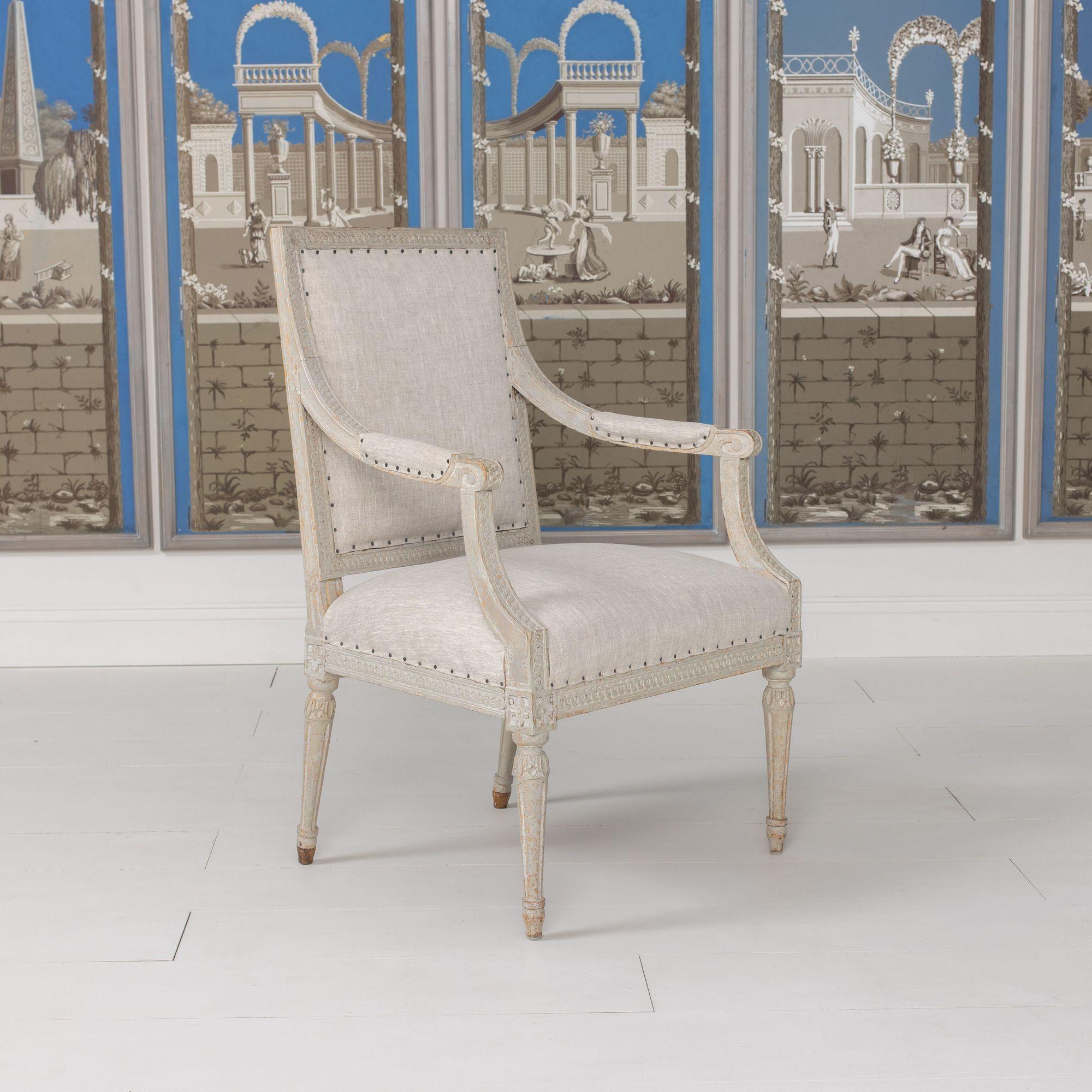 18th c. German Louis XVI Period Beech Wood Armchair in Original Paint