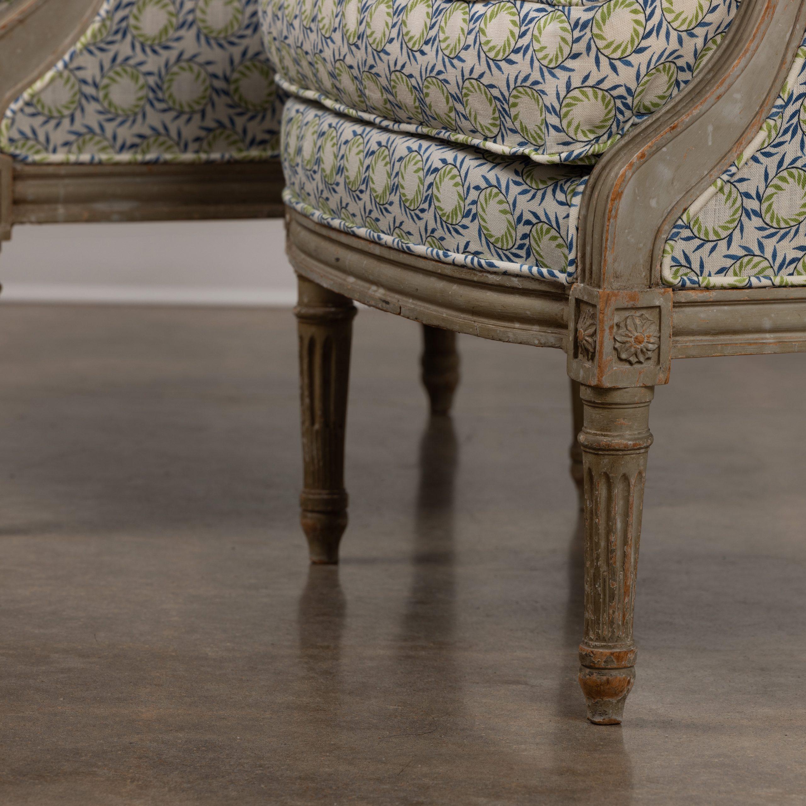 19th c. French Pair of Louis XVI Bergère Chairs in Original Paint