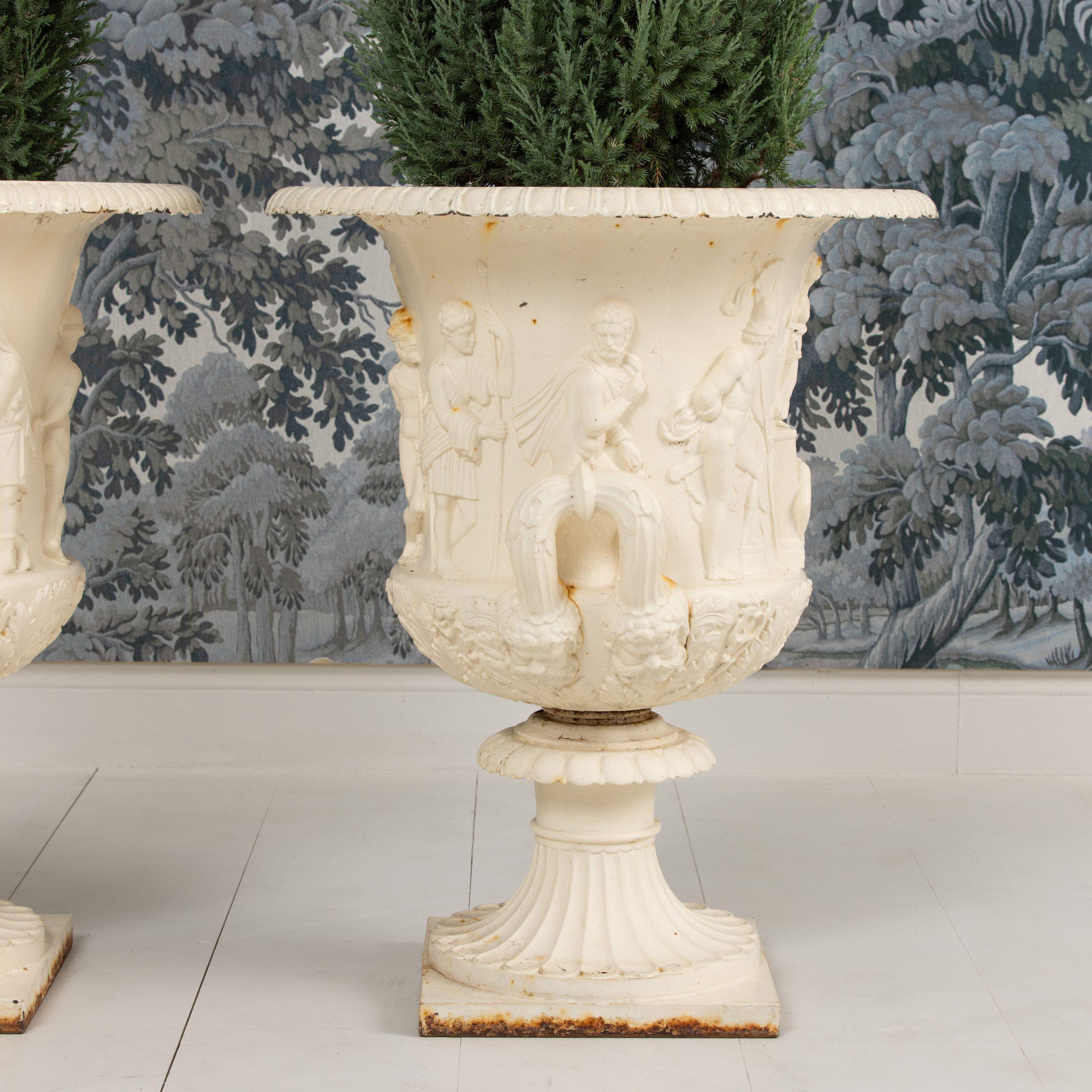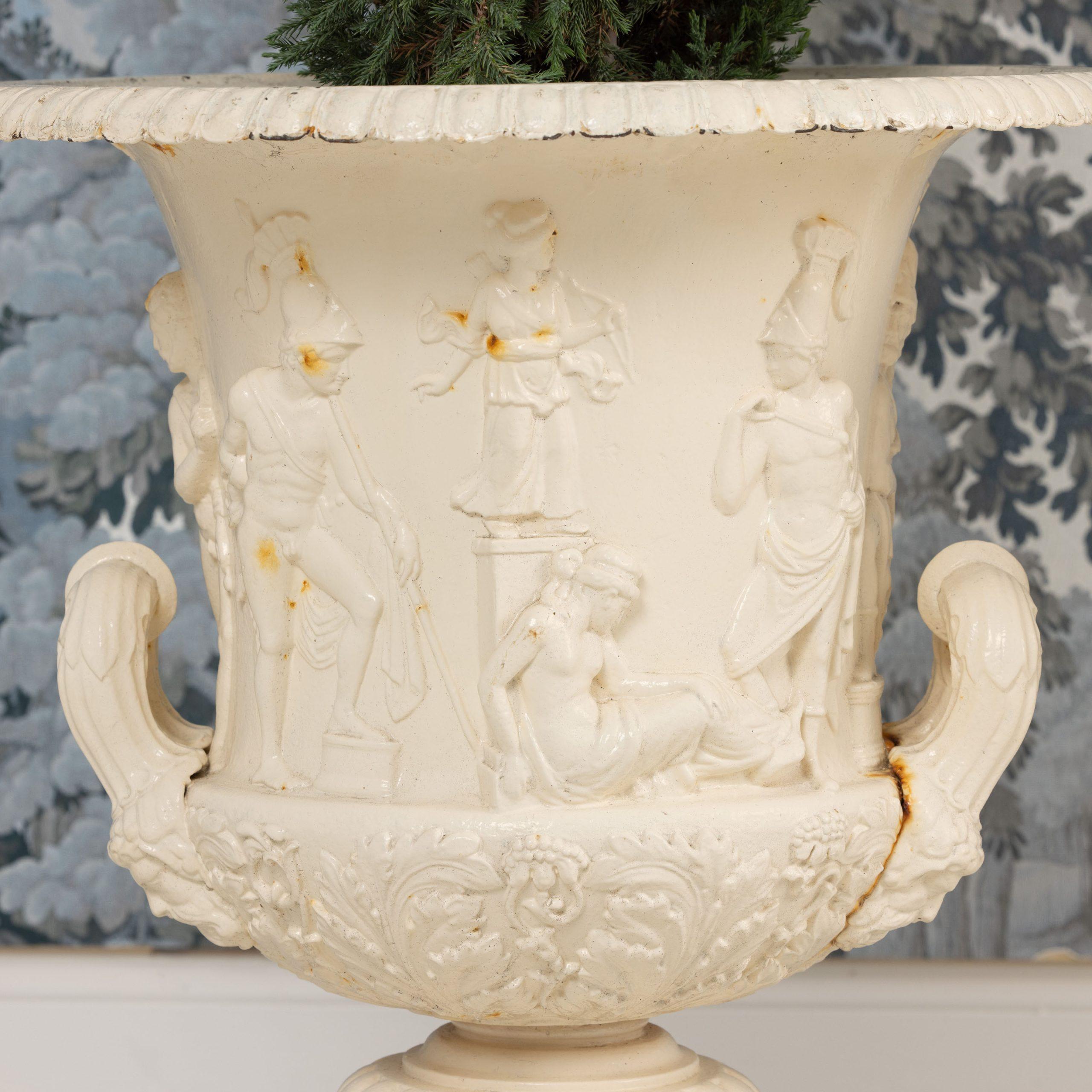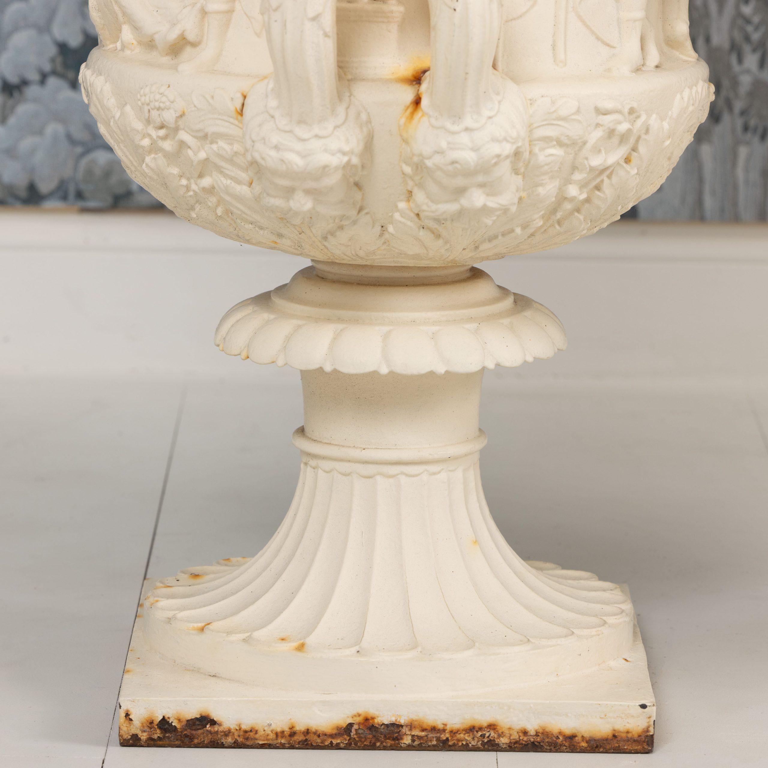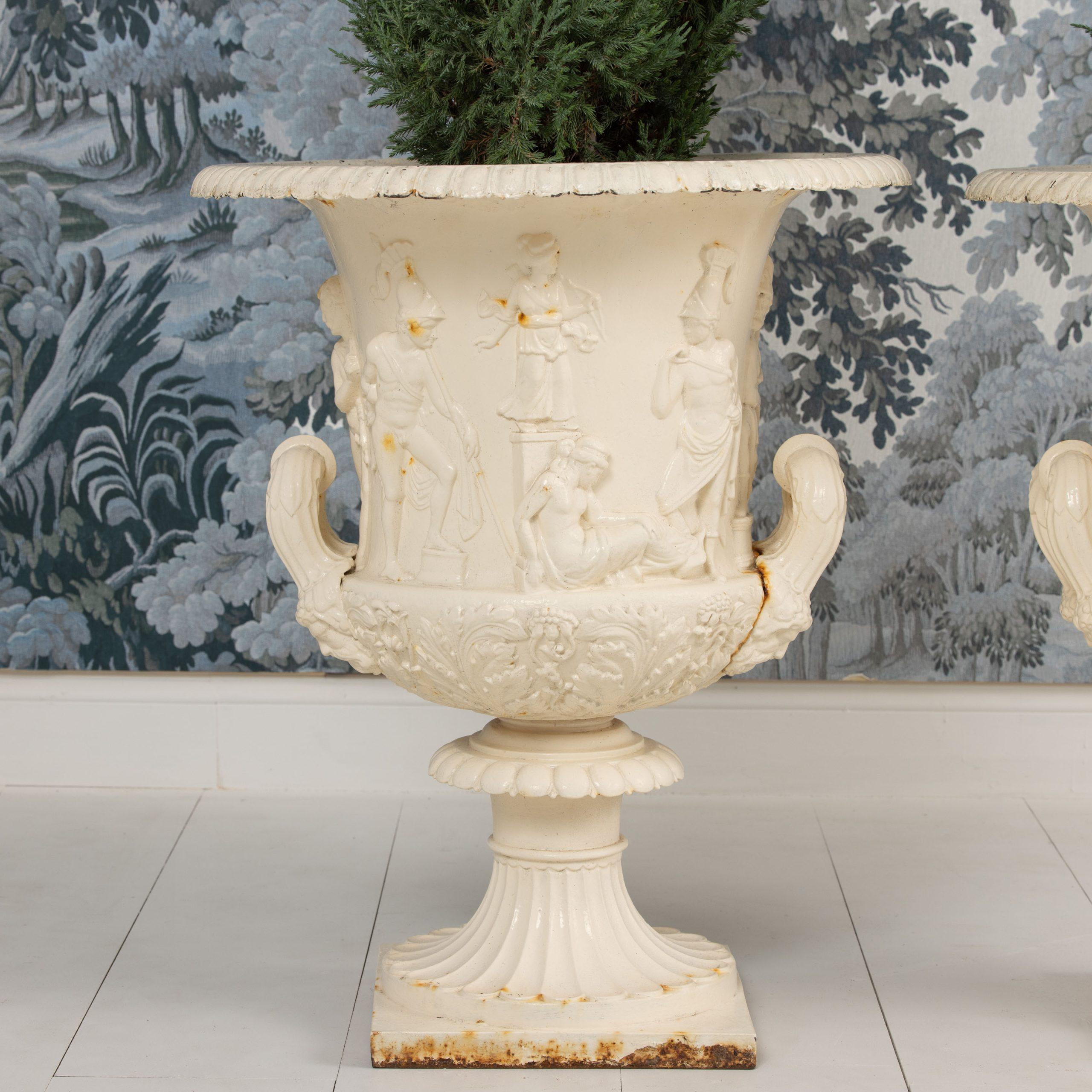 19th c. Pair of English Painted Cast Iron Medici or Borghese Urns