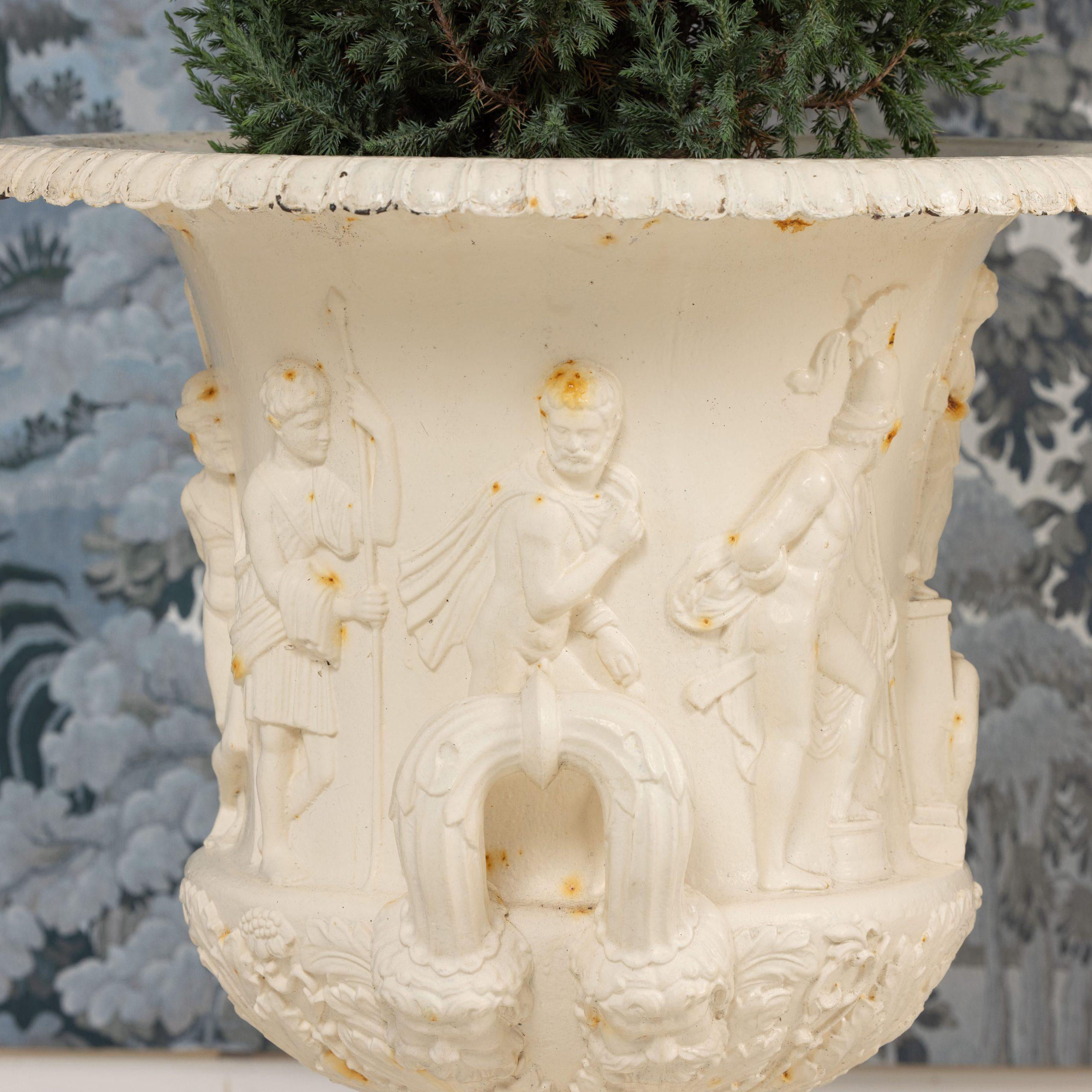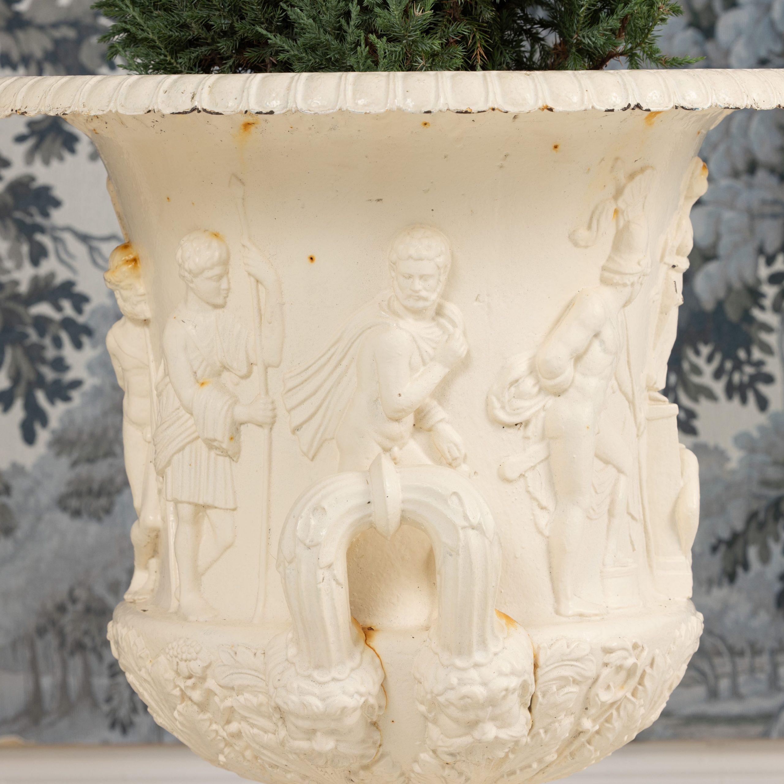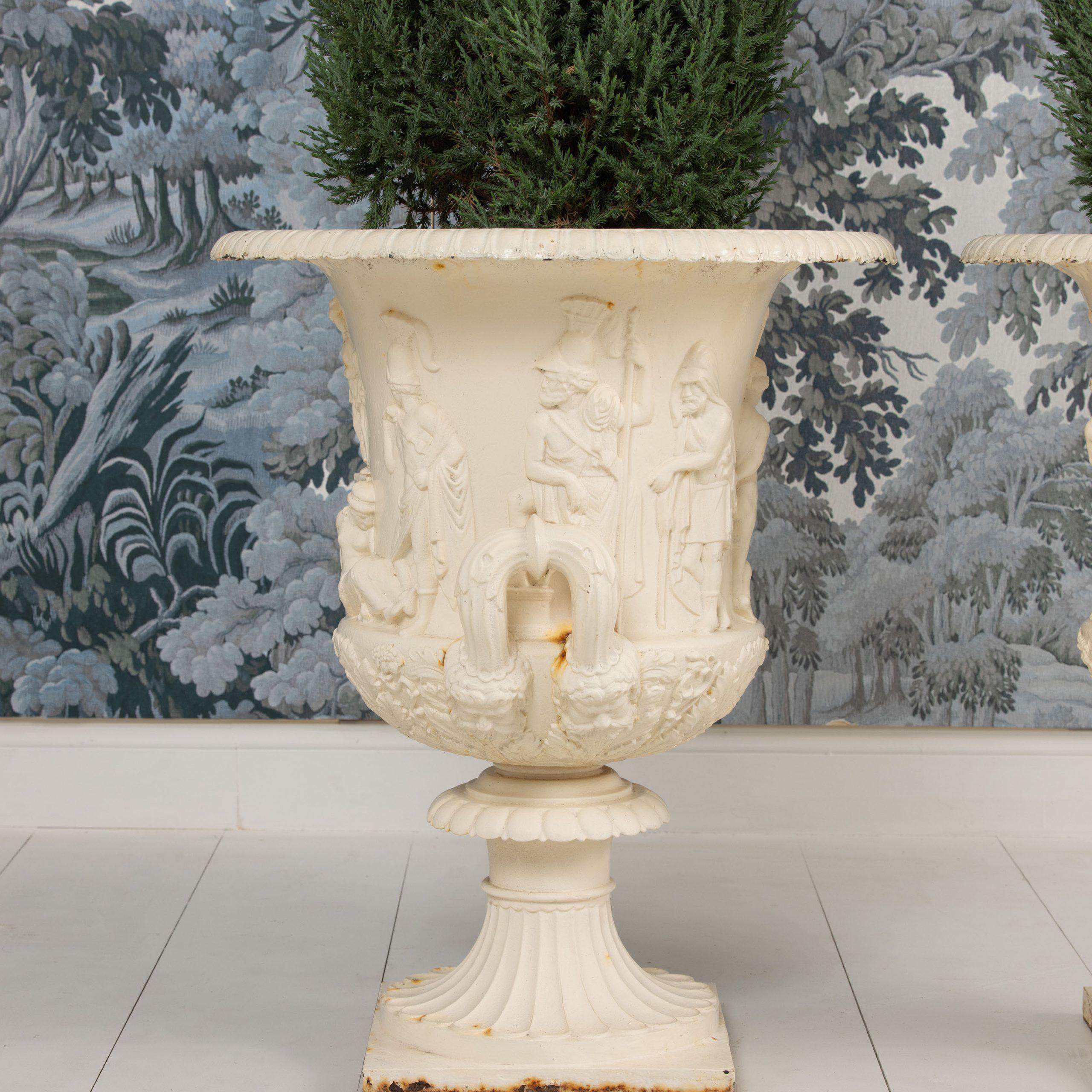 19th c. Pair of English Painted Cast Iron Medici or Borghese Urns