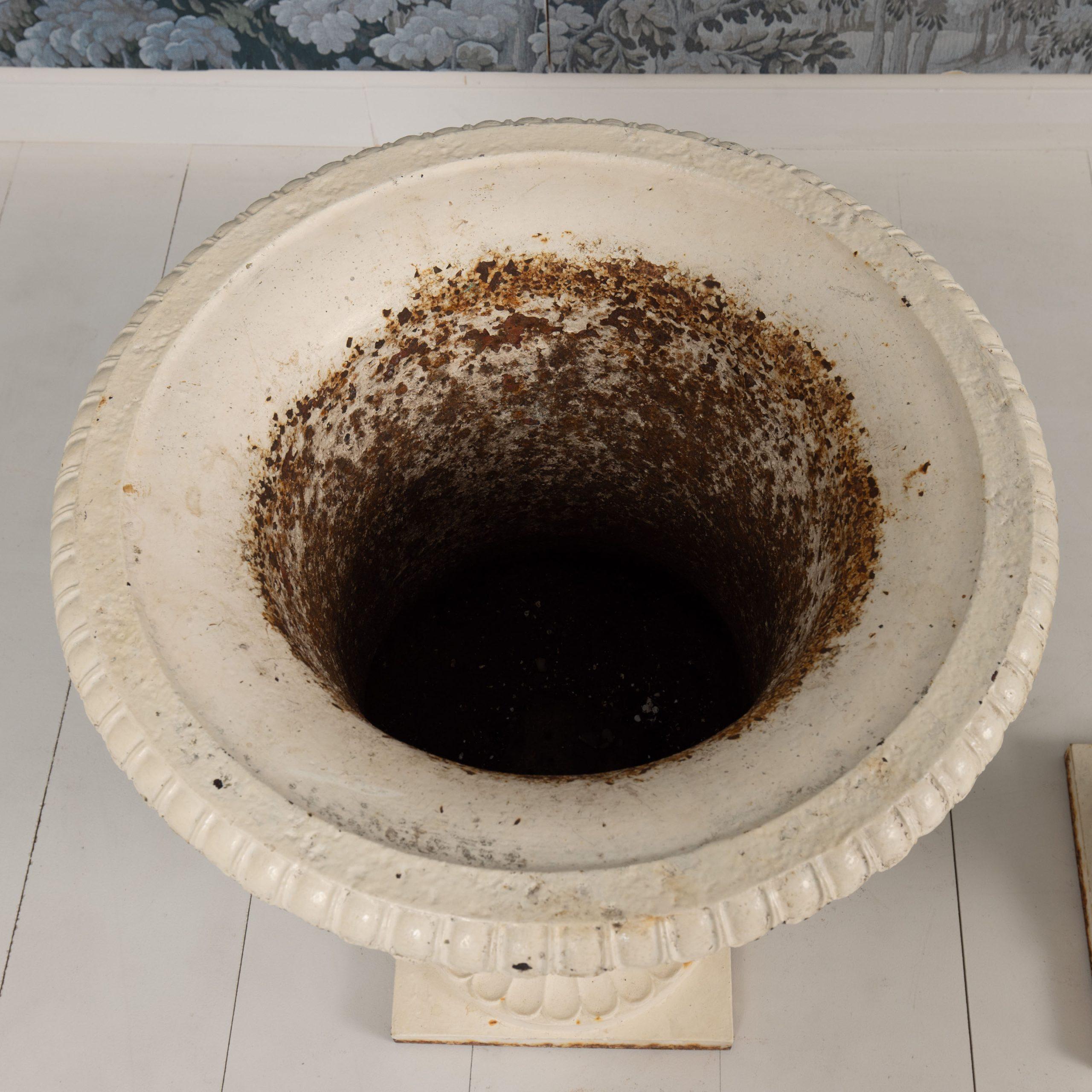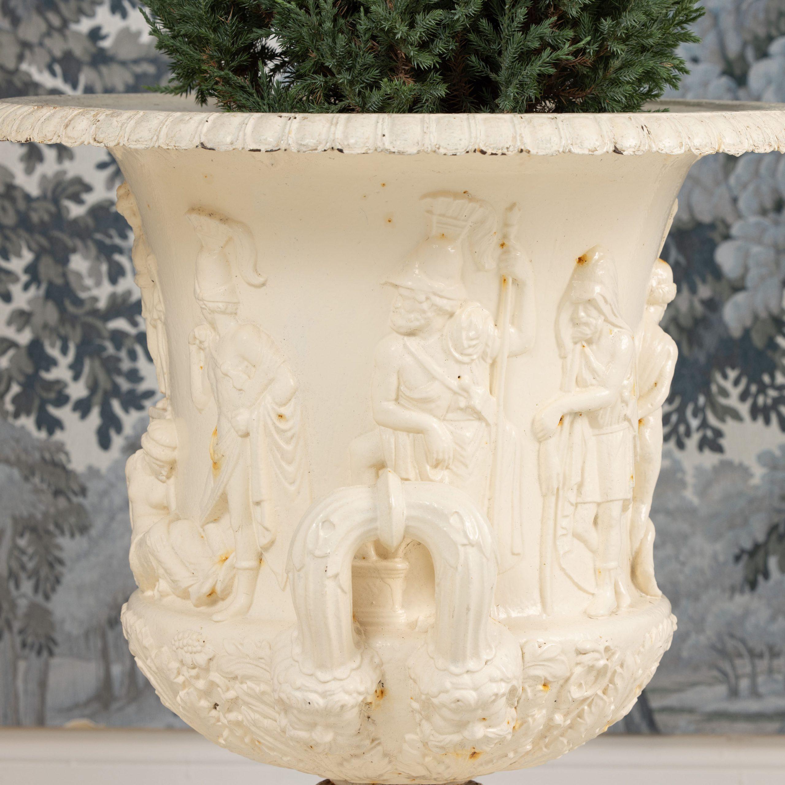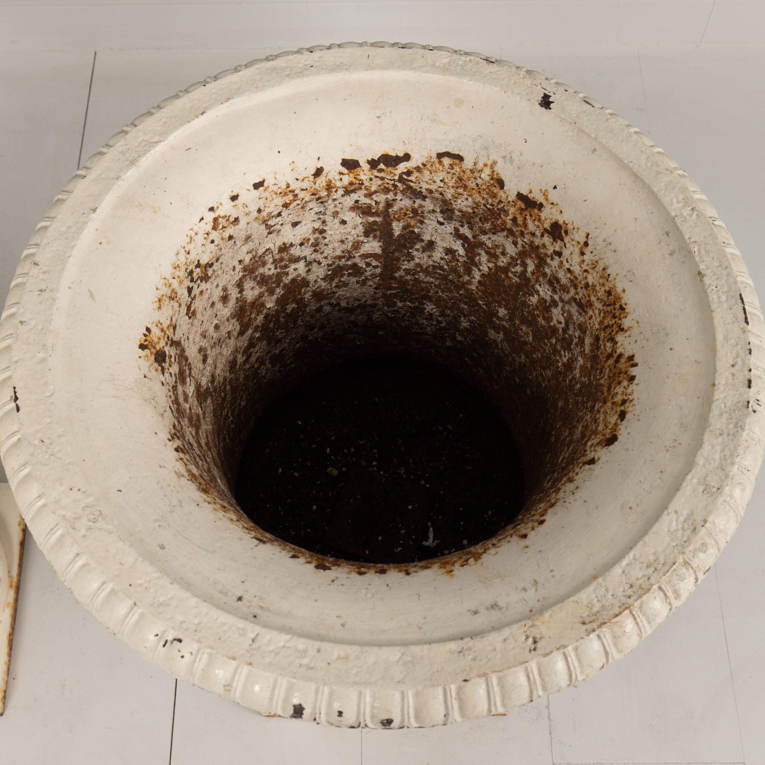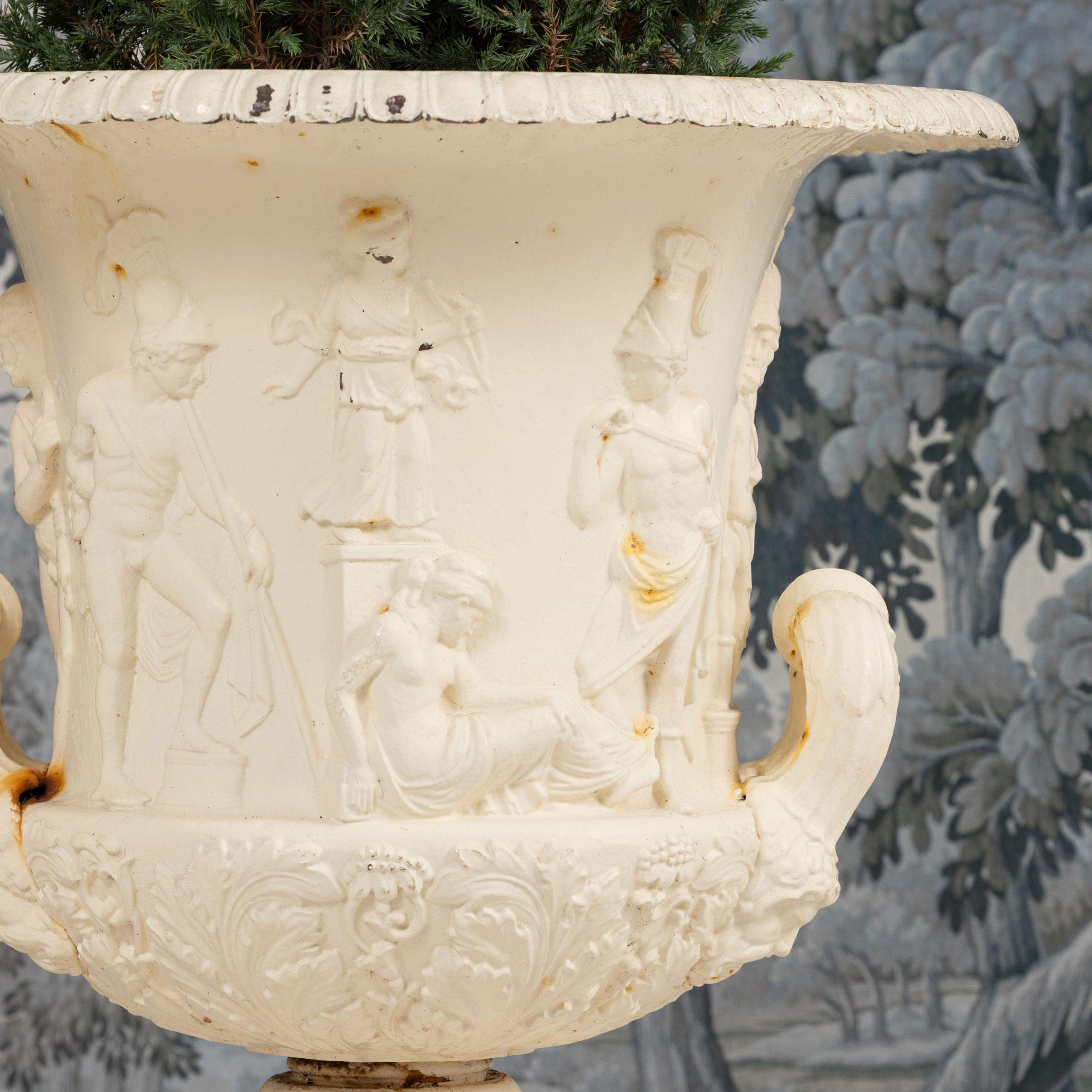 19th c. Pair of English Painted Cast Iron Medici or Borghese Urns