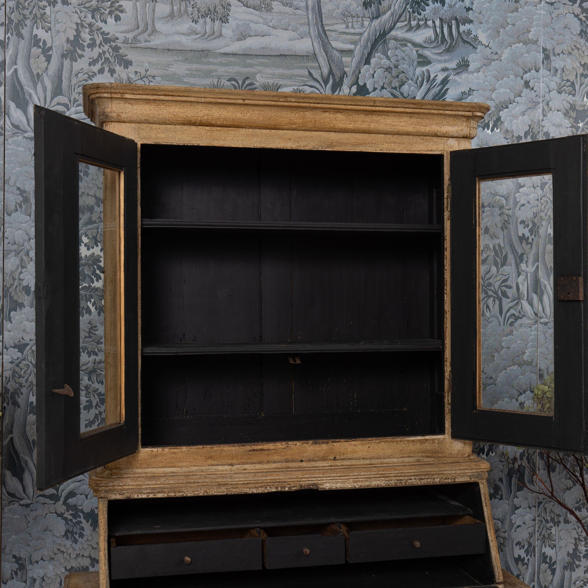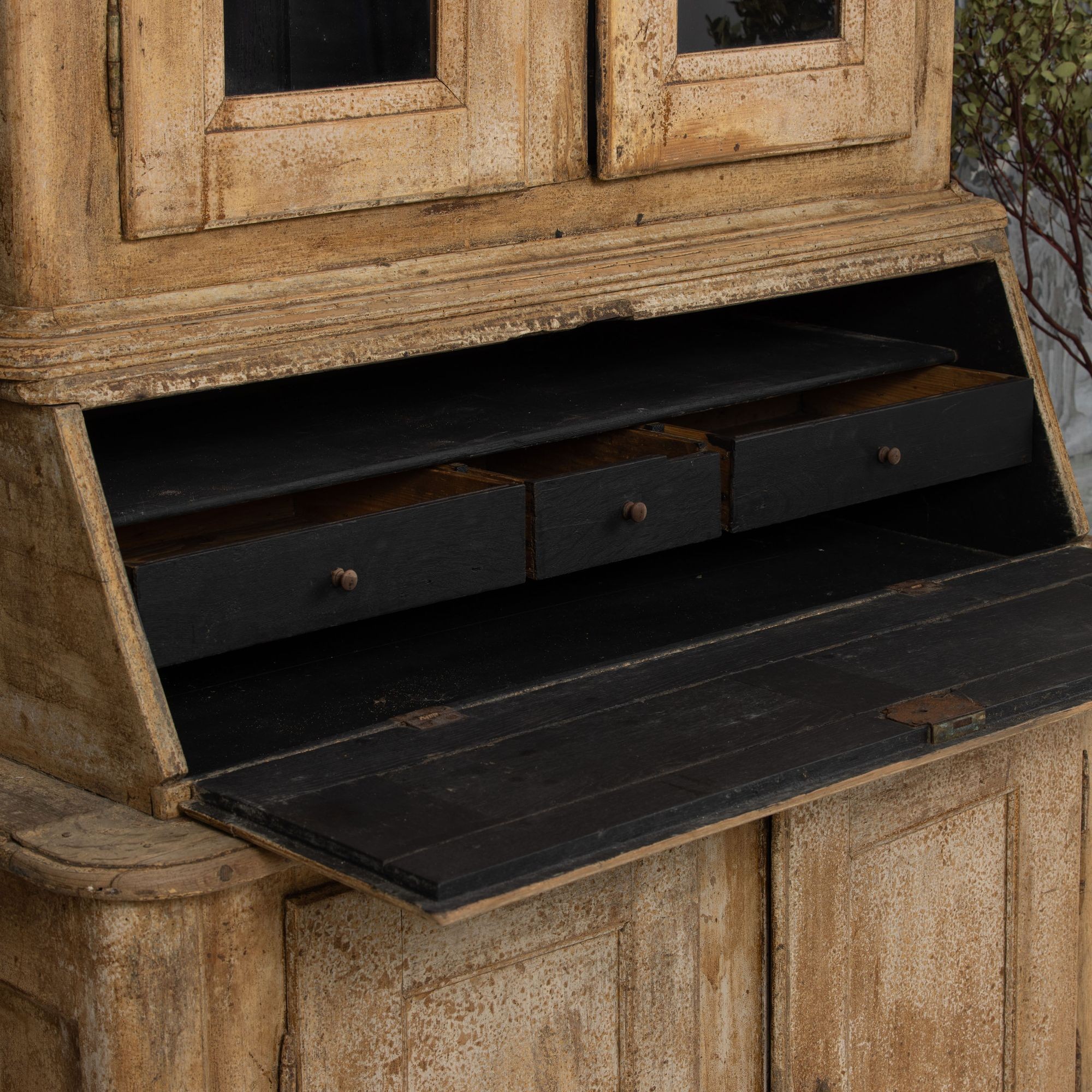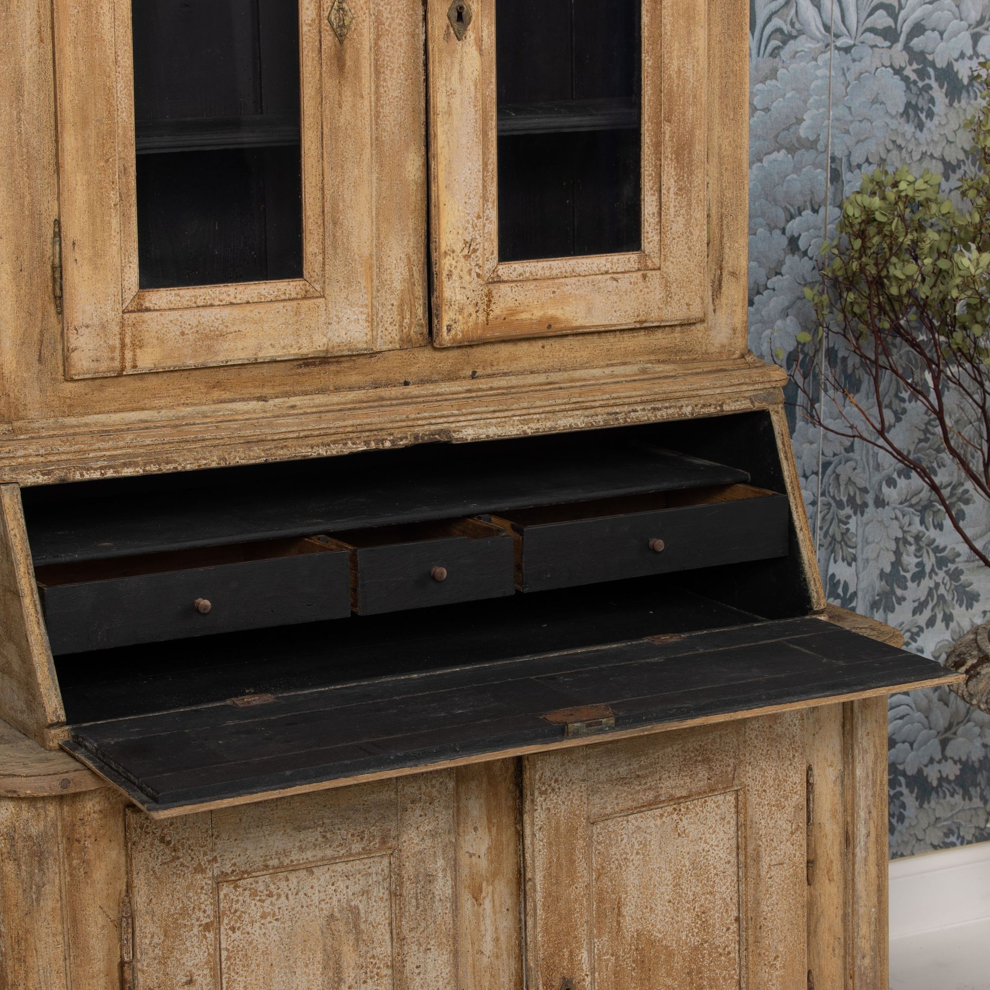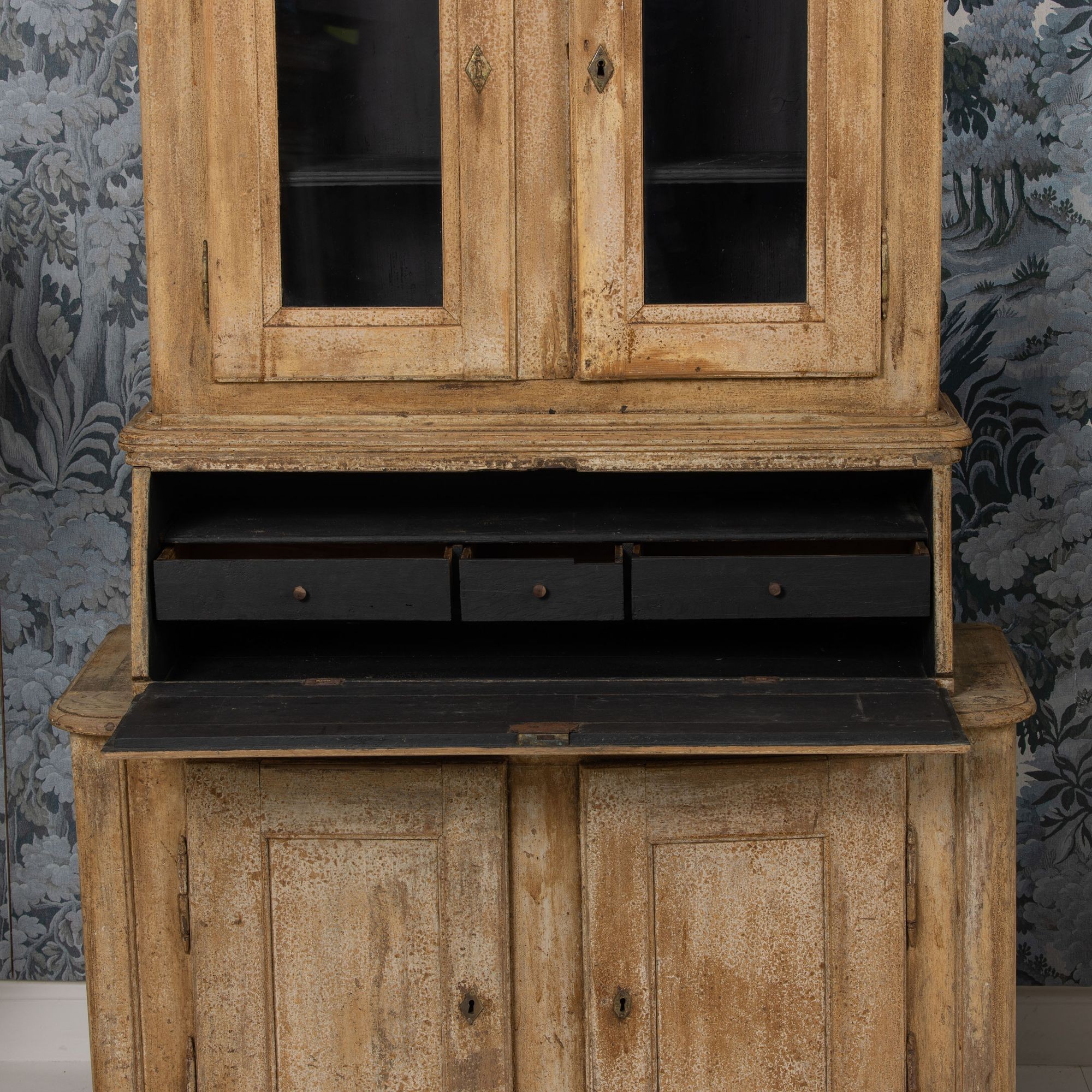 19th c. Swedish Secretary with Vitrine Library in Original Paint
