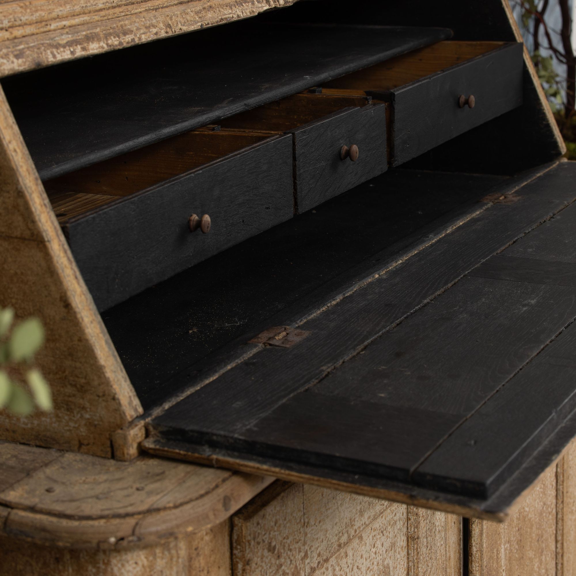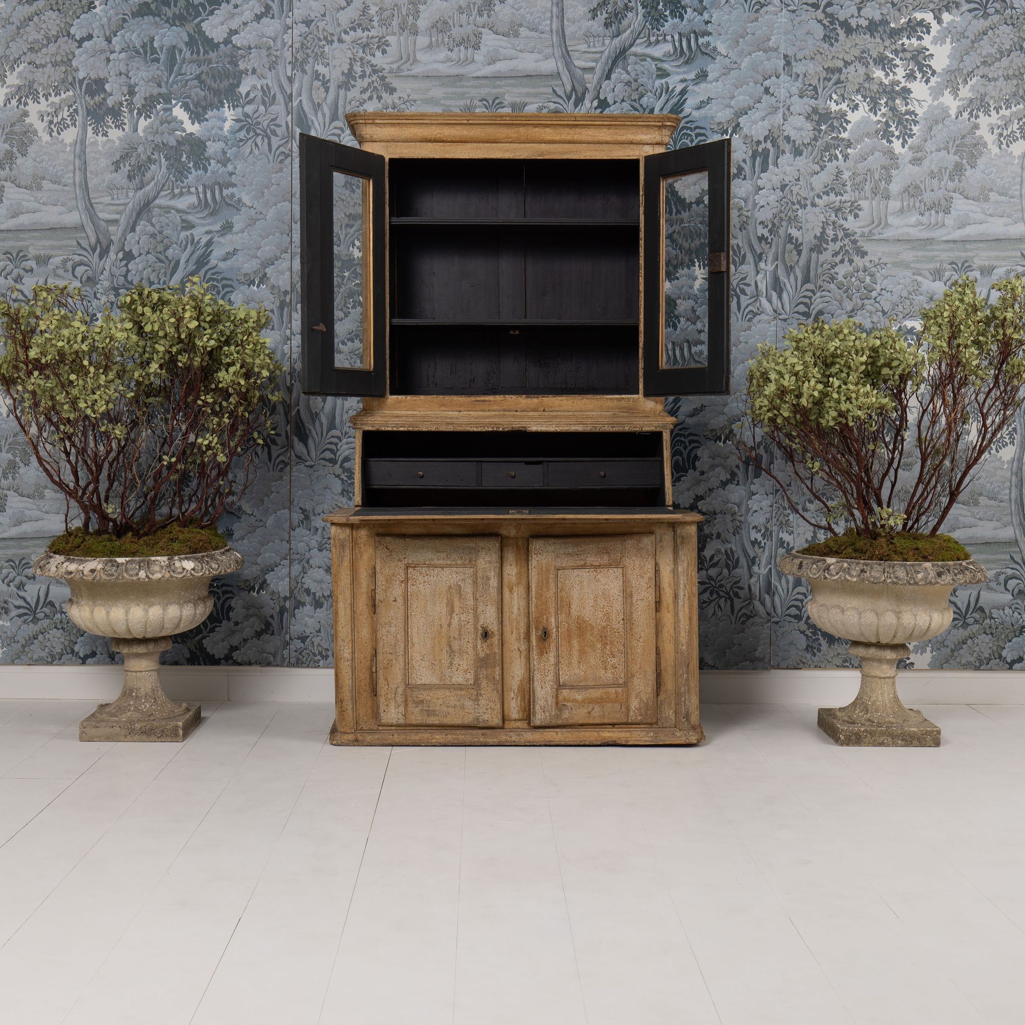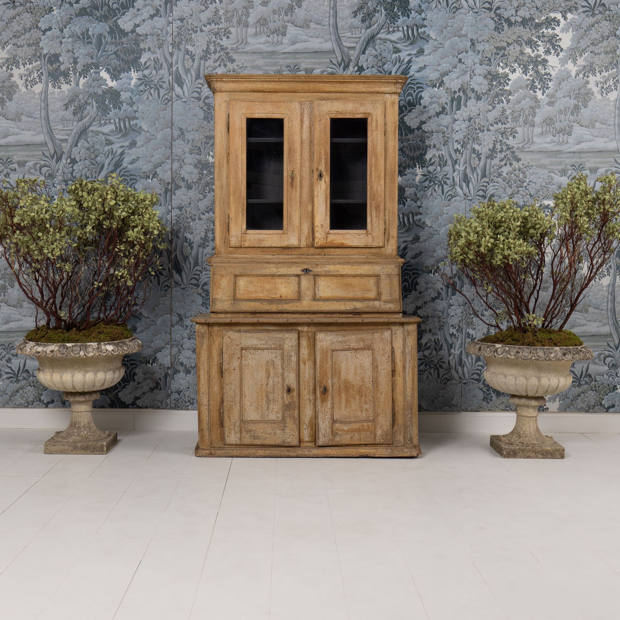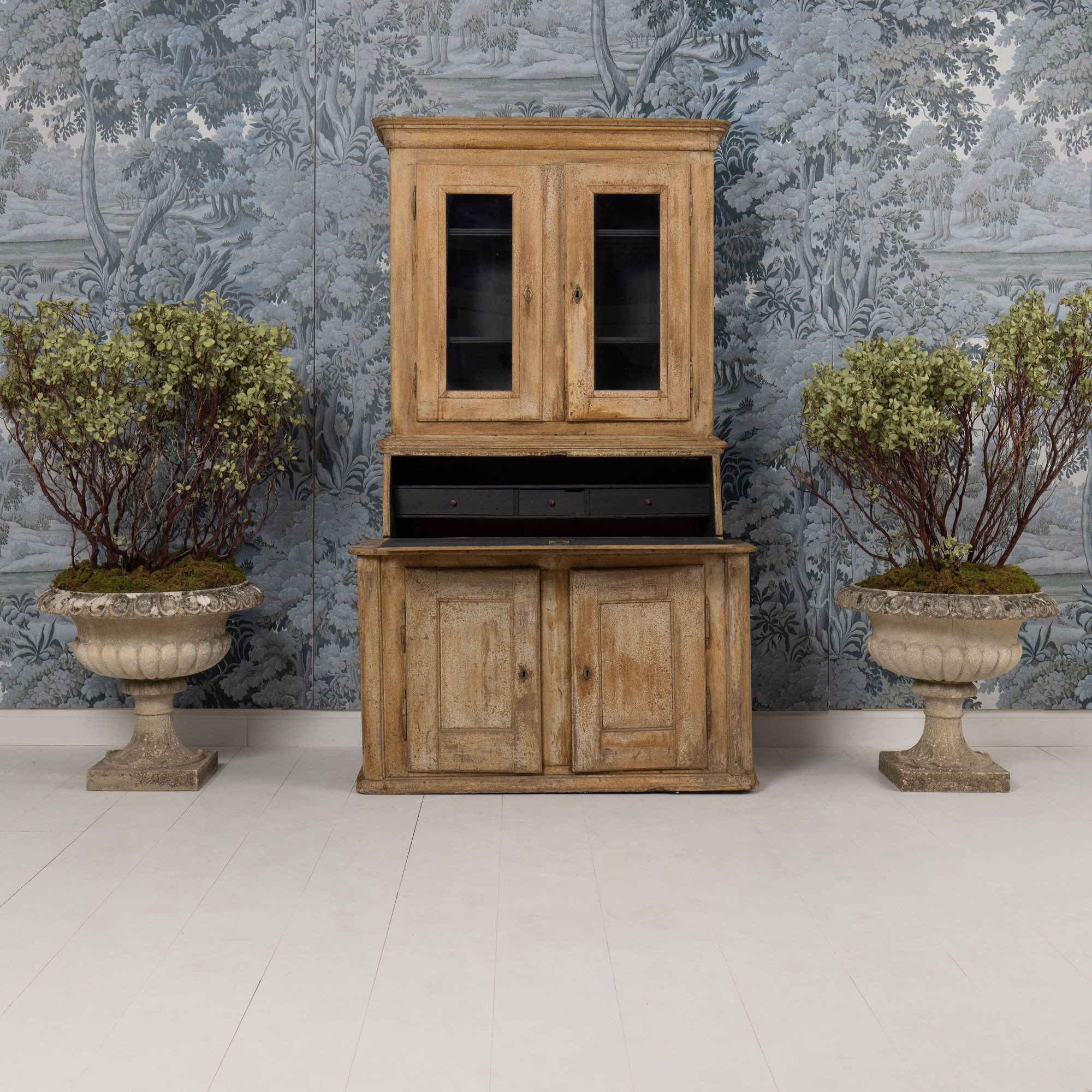 19th c. Swedish Secretary with Vitrine Library in Original Paint