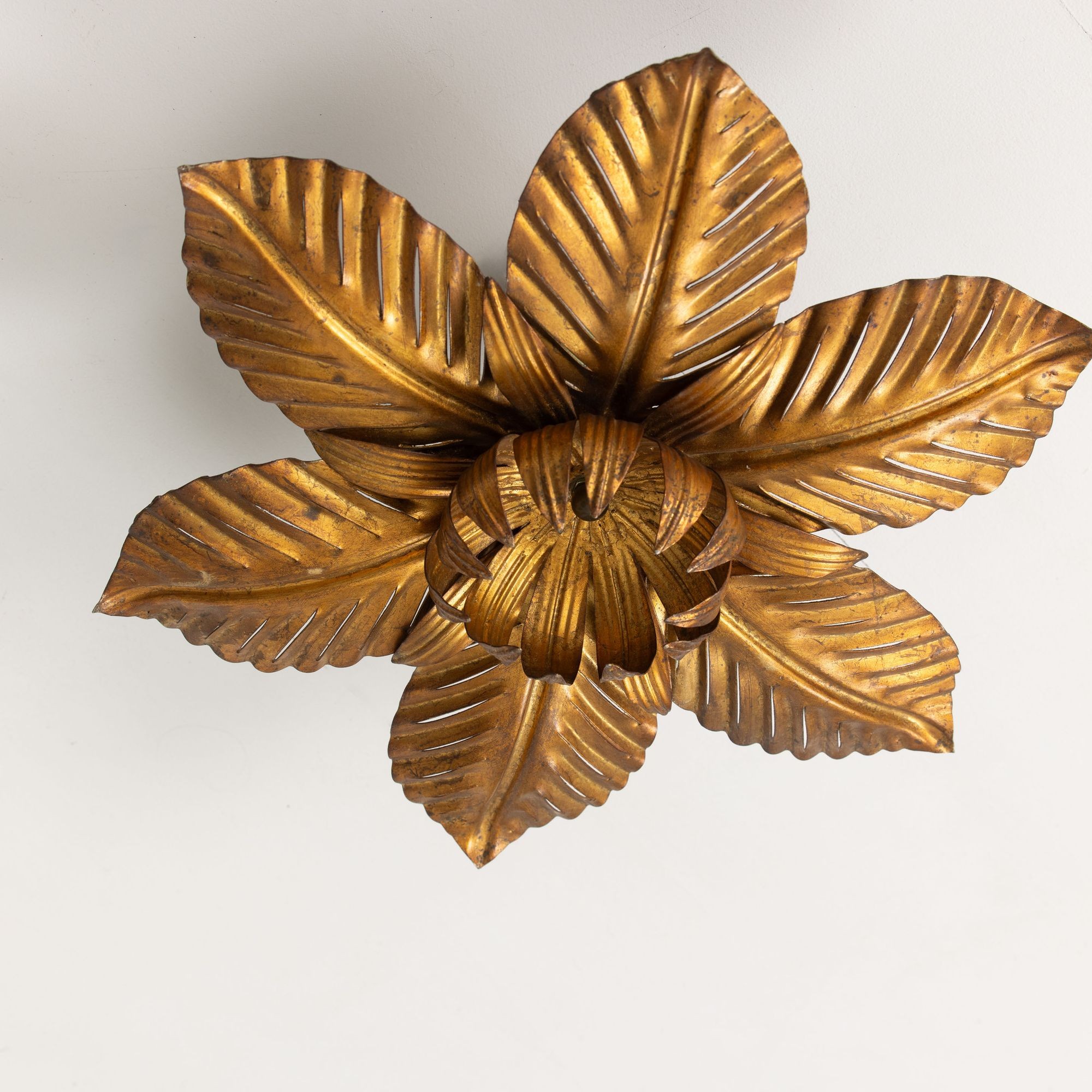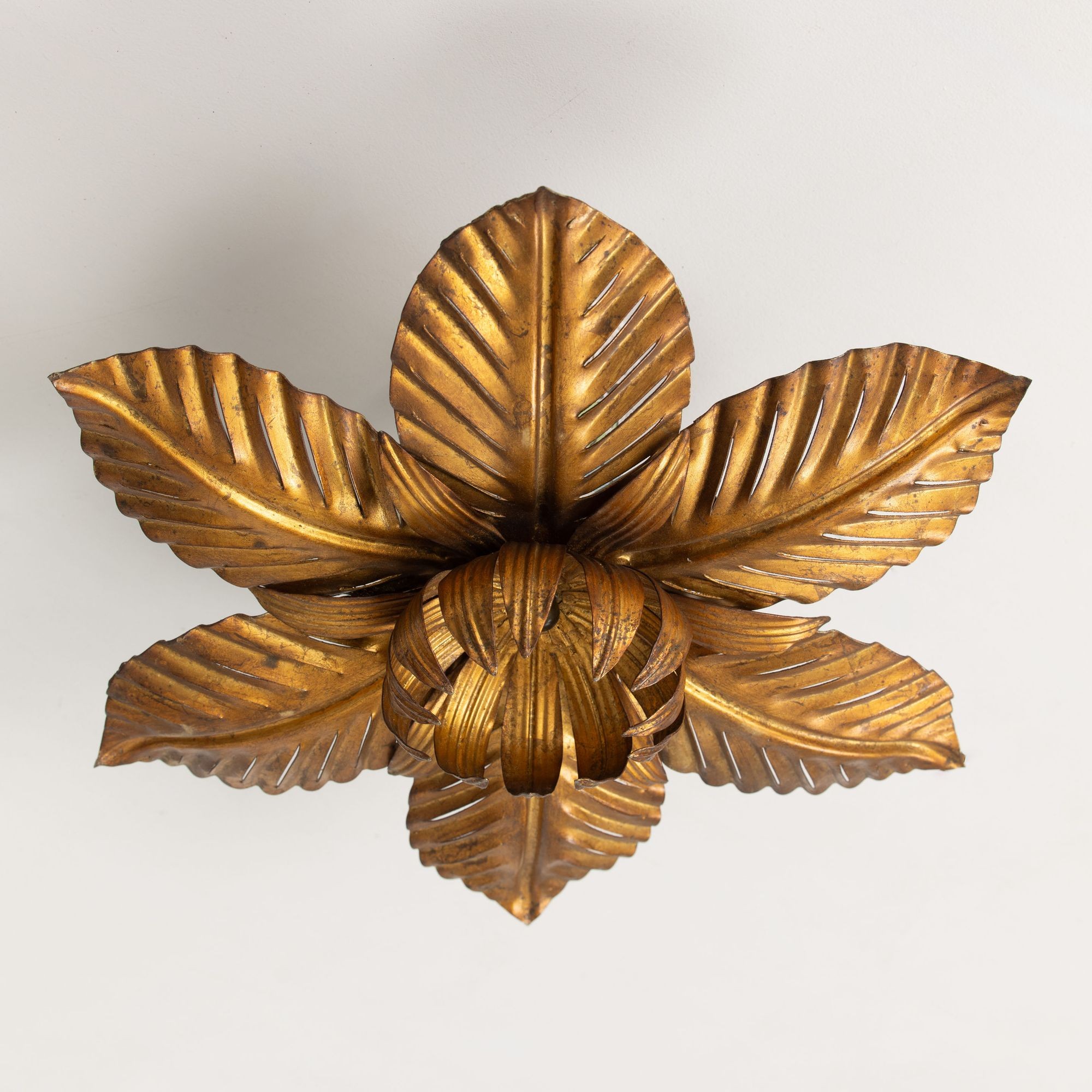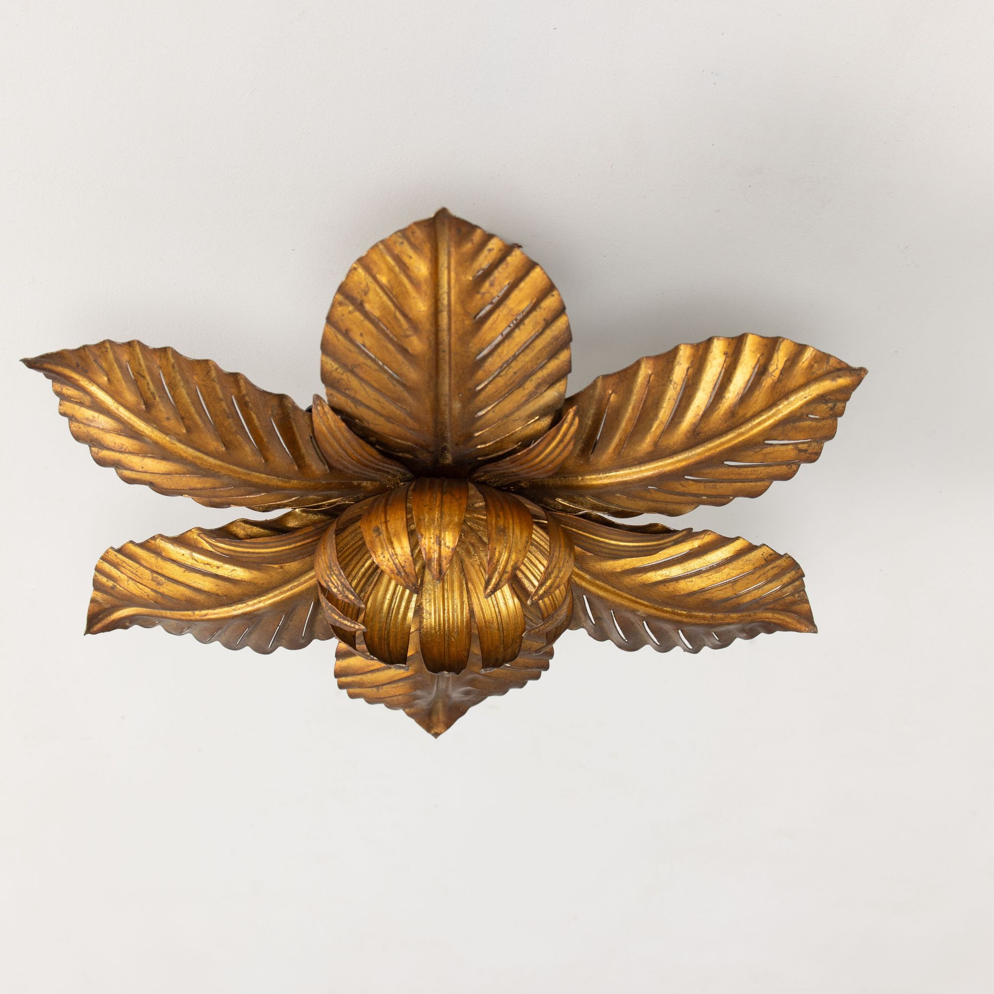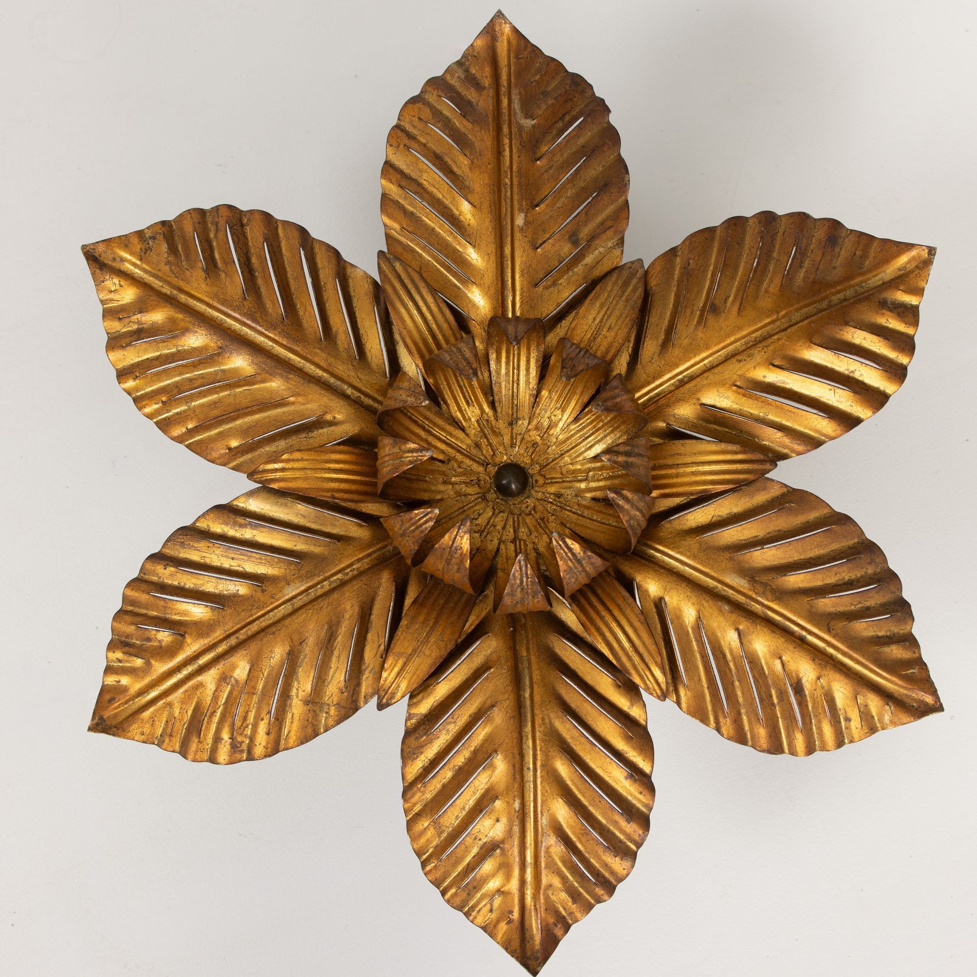 Mid Century Italian Gold Leaf Metal Flush Mount Ceiling Light