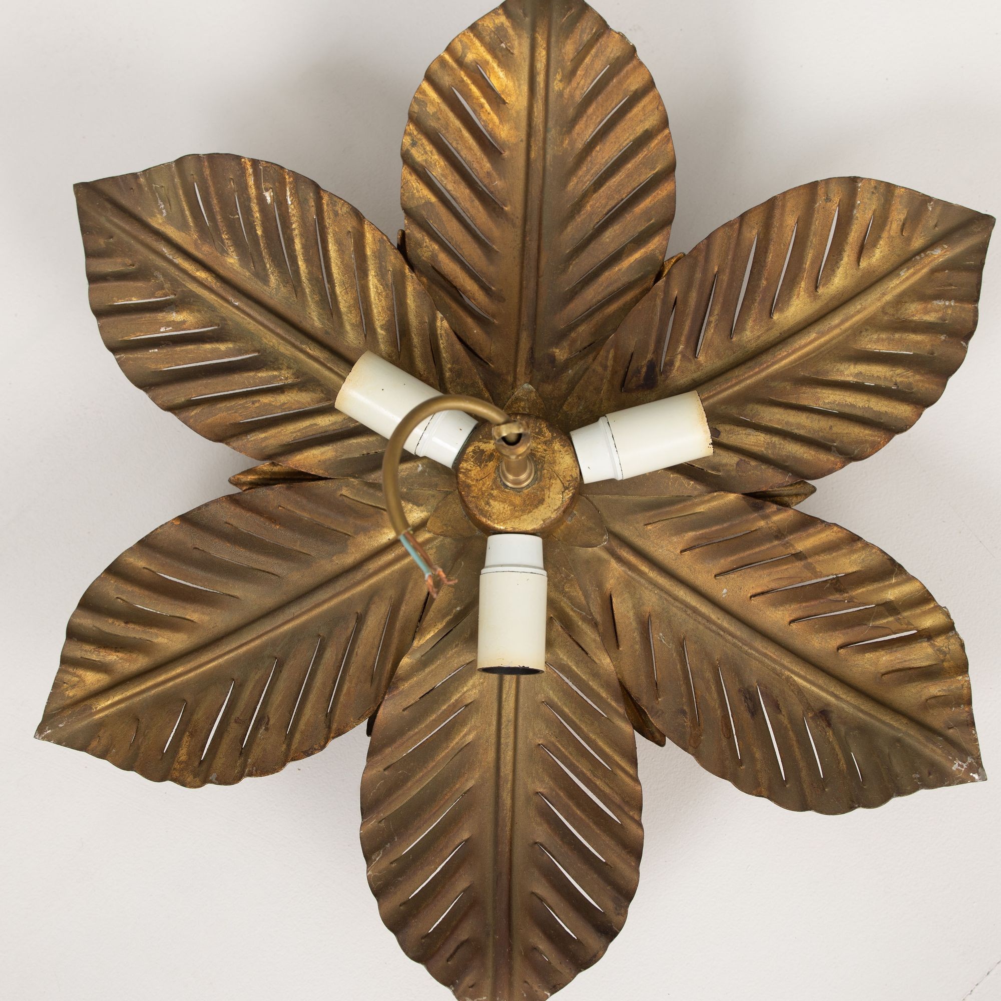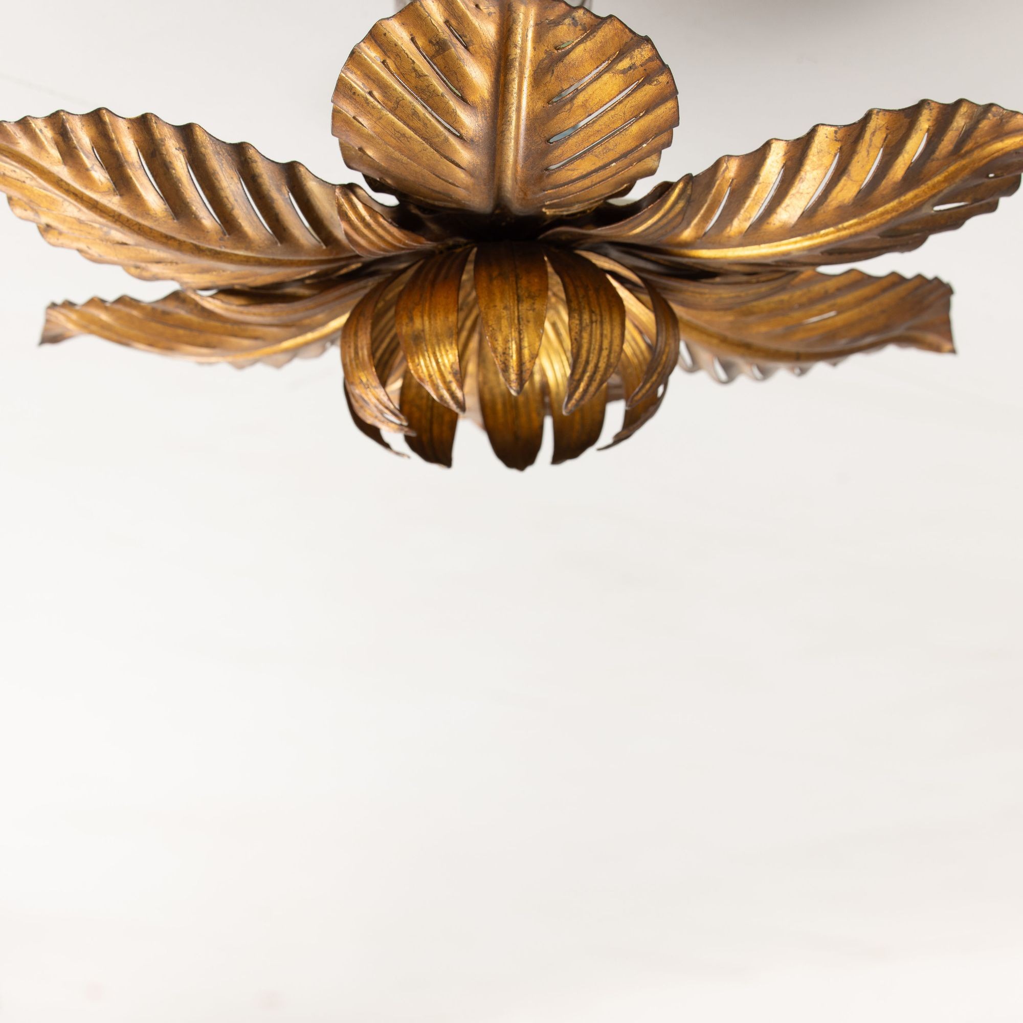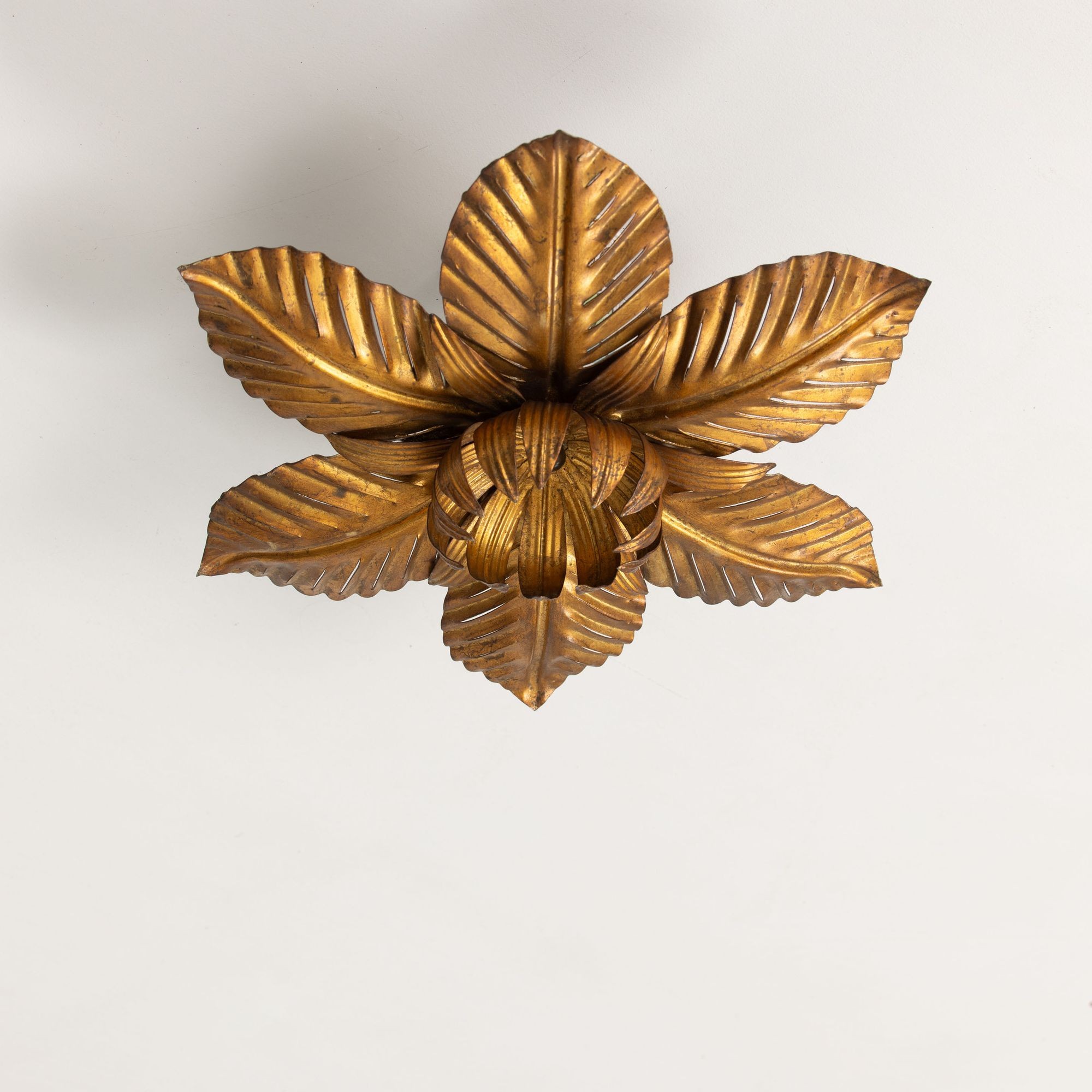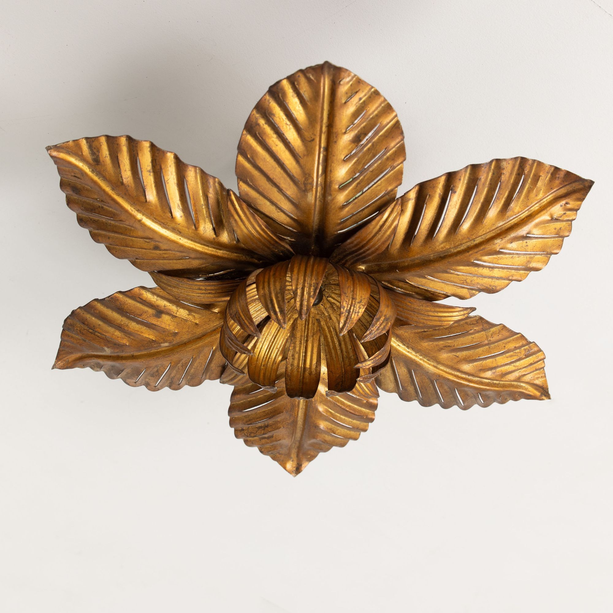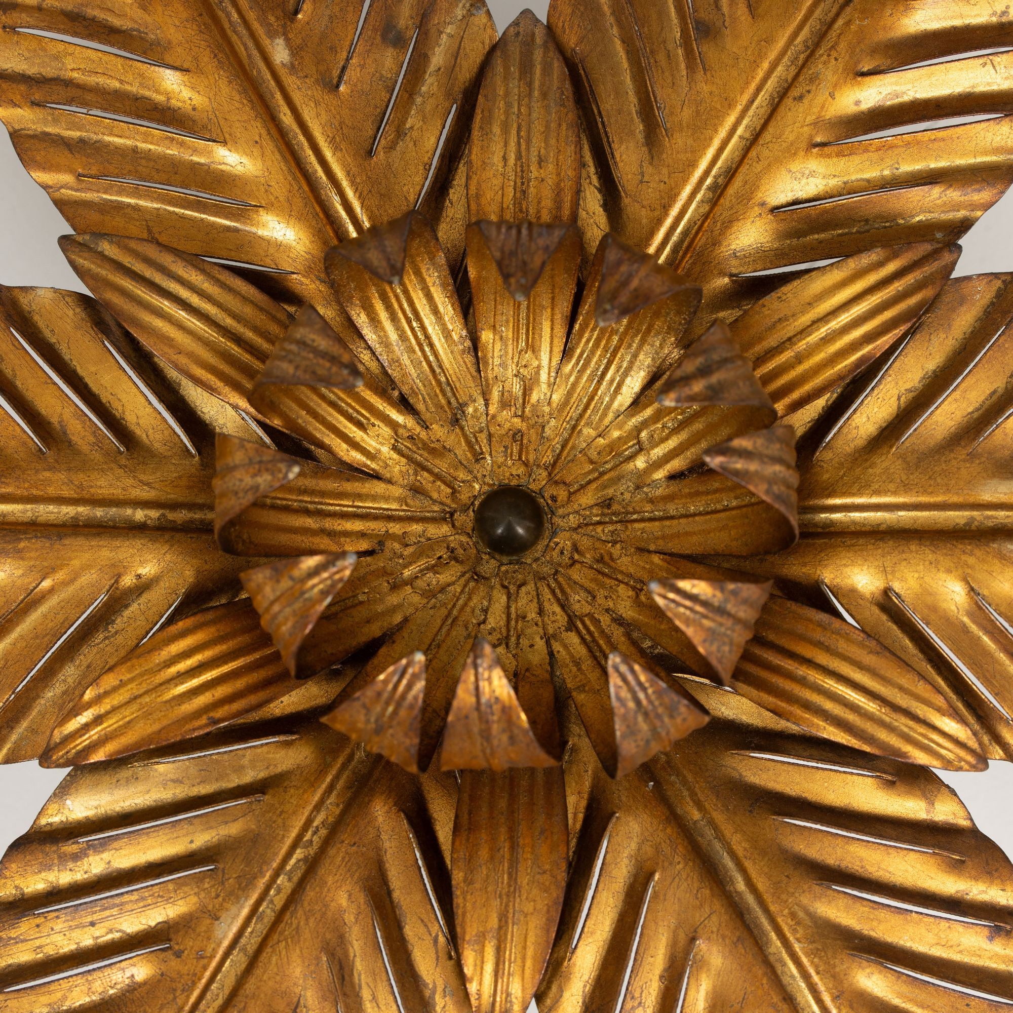 Mid Century Italian Gold Leaf Metal Flush Mount Ceiling Light