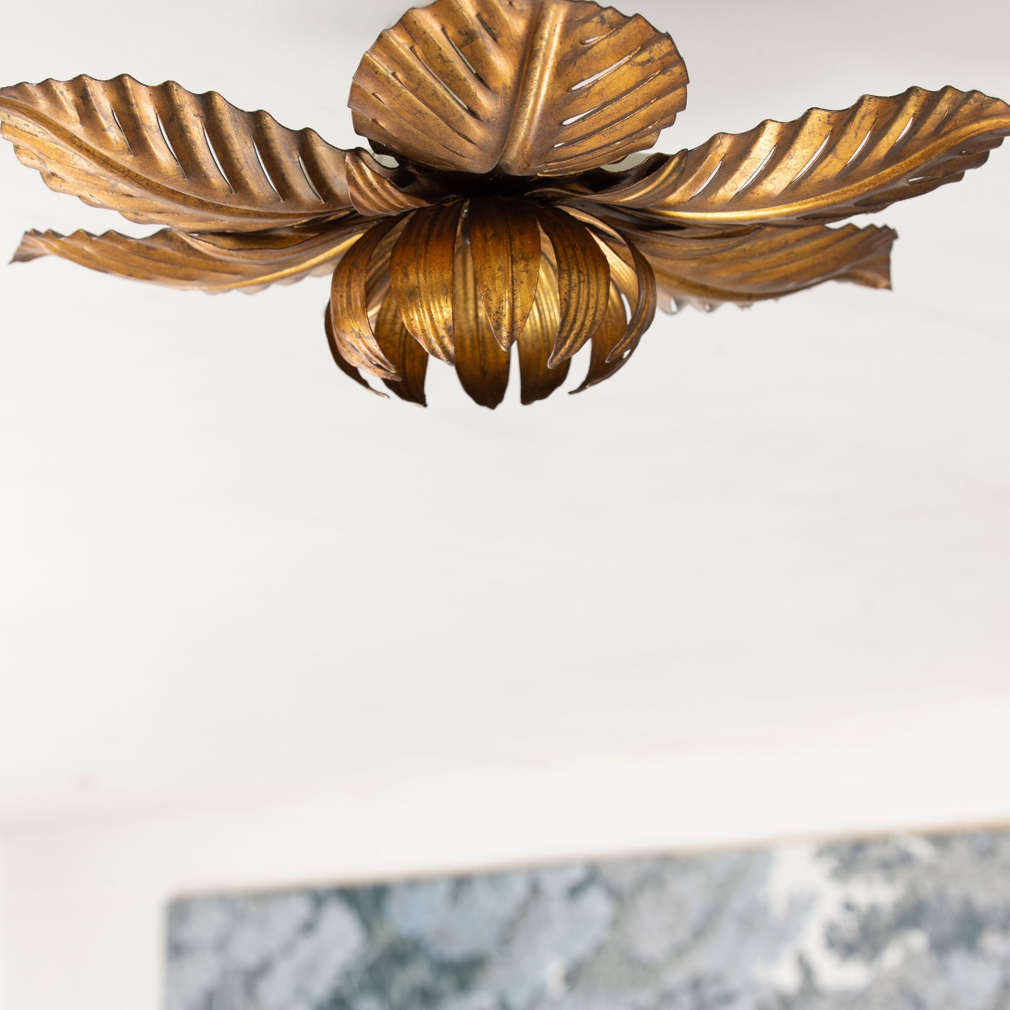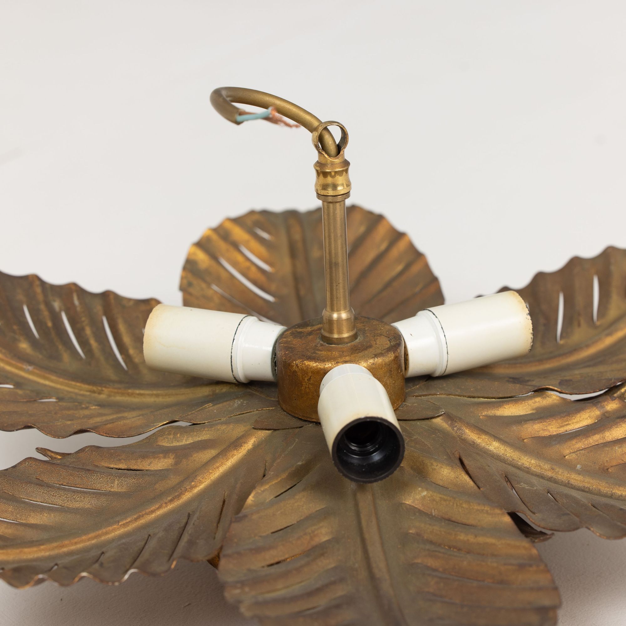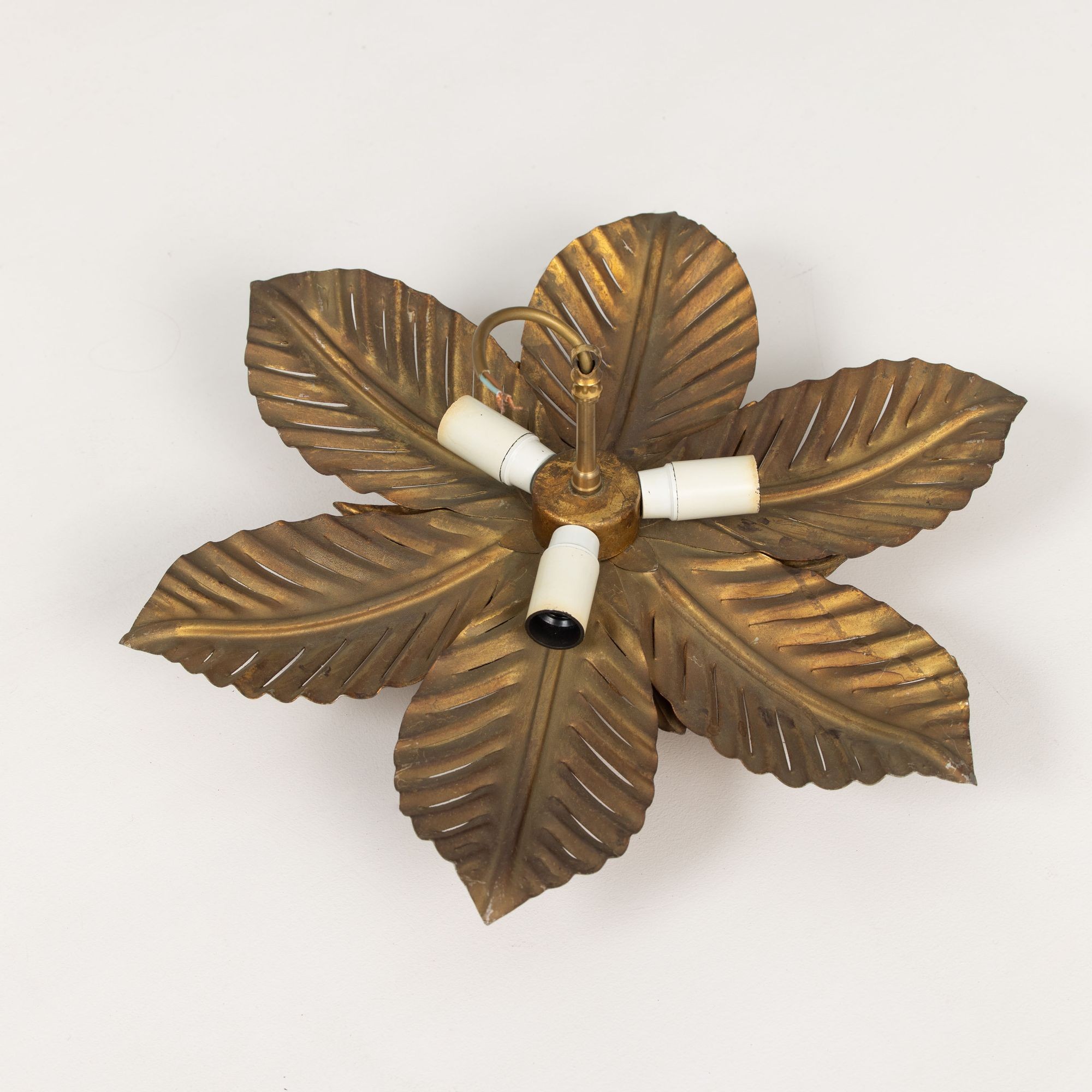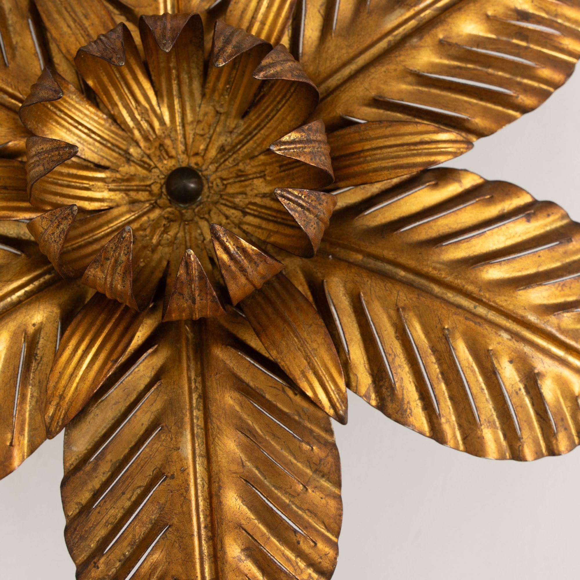 Mid Century Italian Gold Leaf Metal Flush Mount Ceiling Light