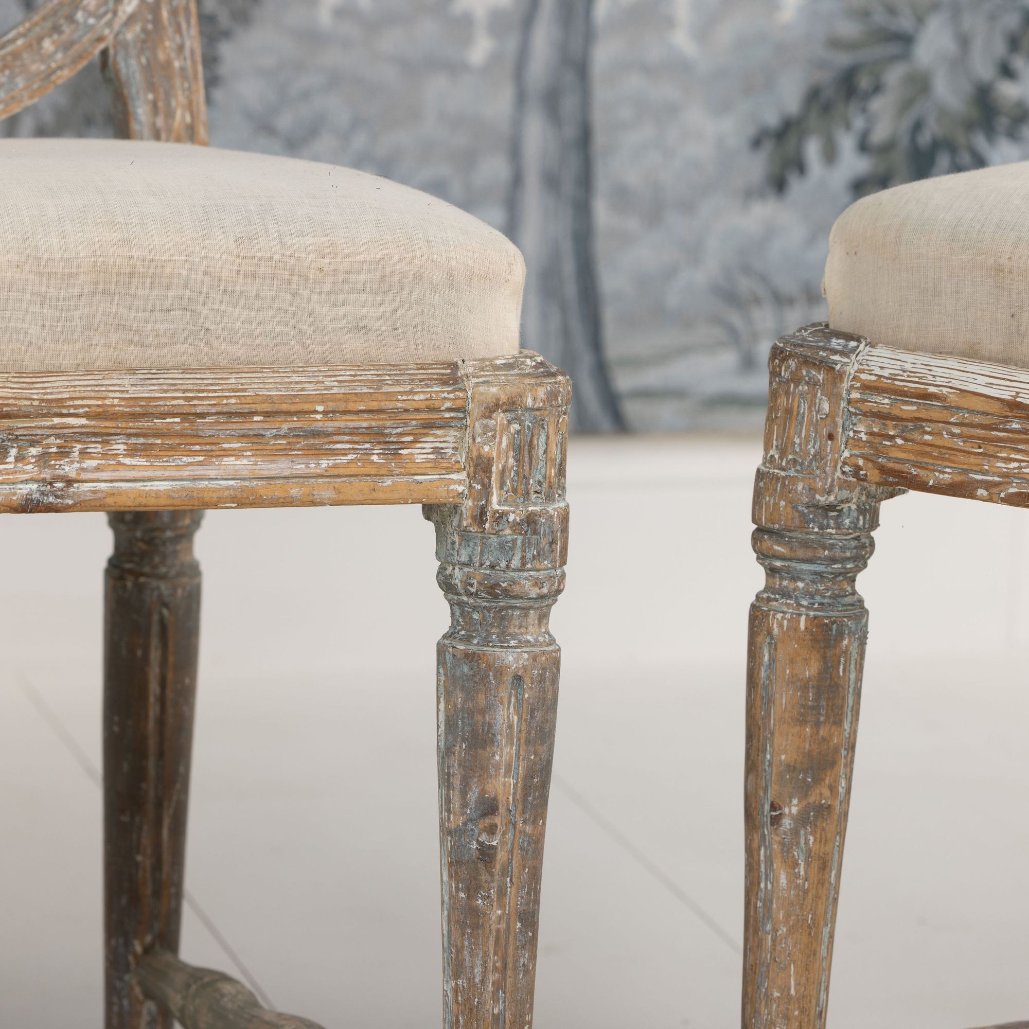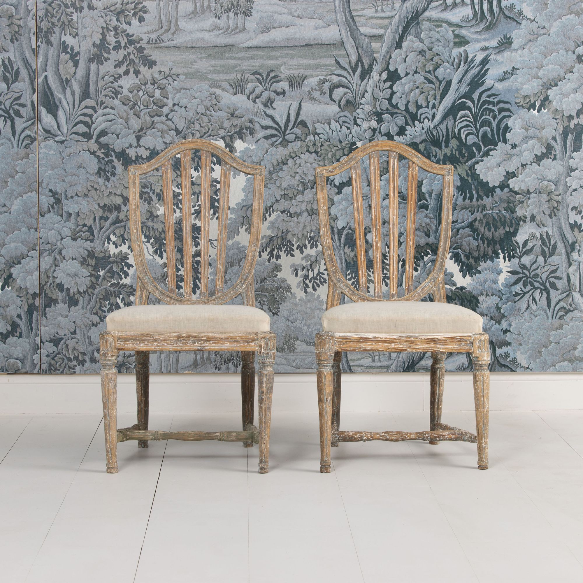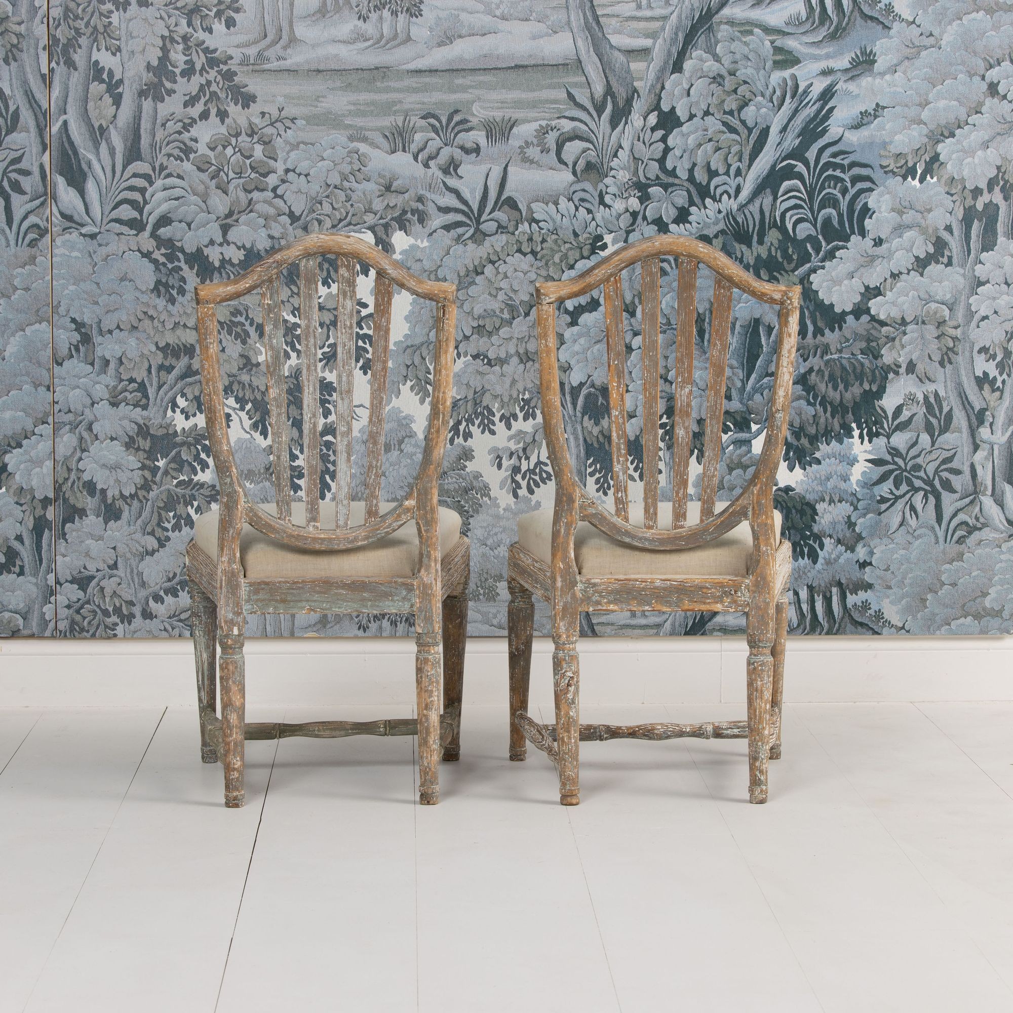 Pair of 19th c. Swedish Gustavian Period Shield Back Chairs in Original Paint