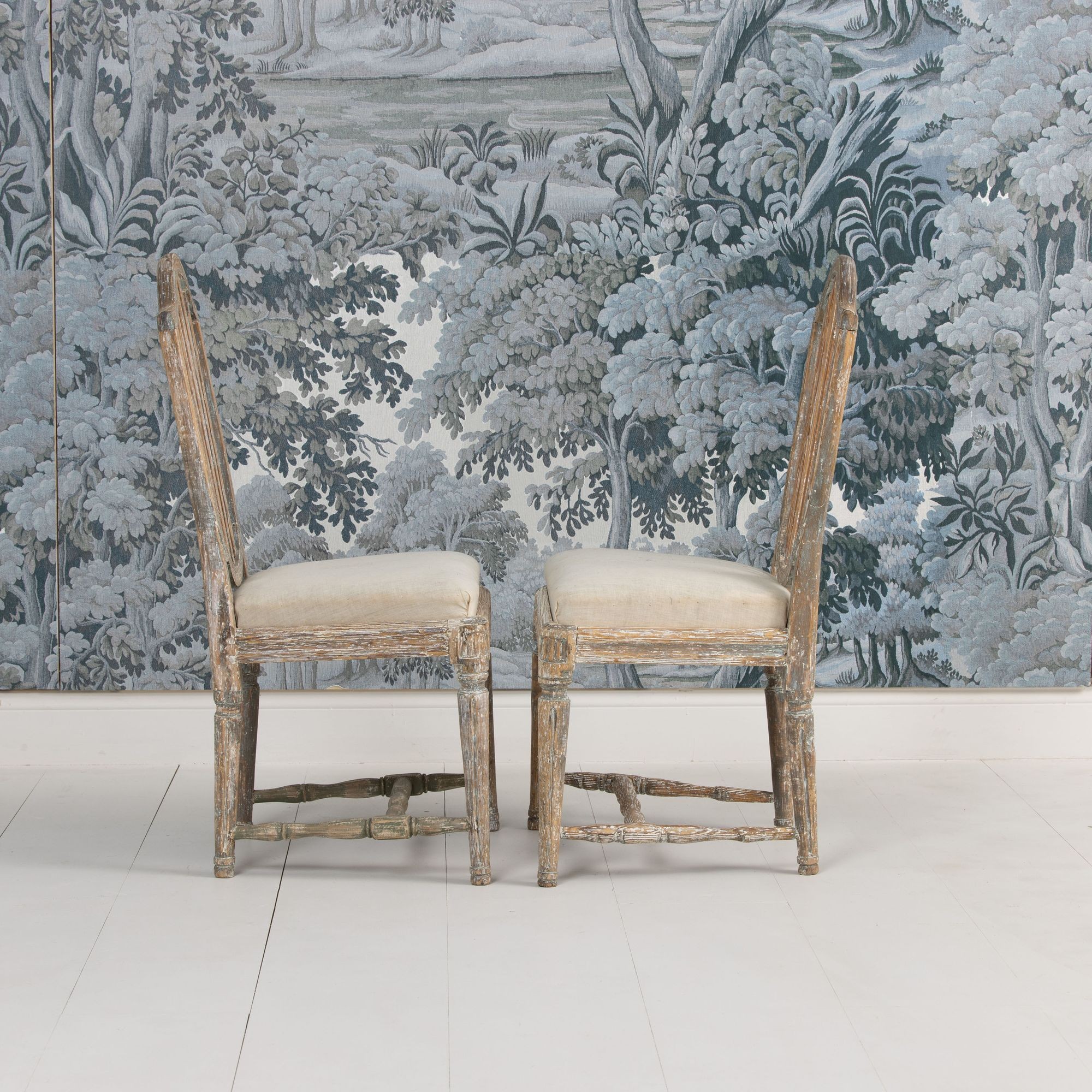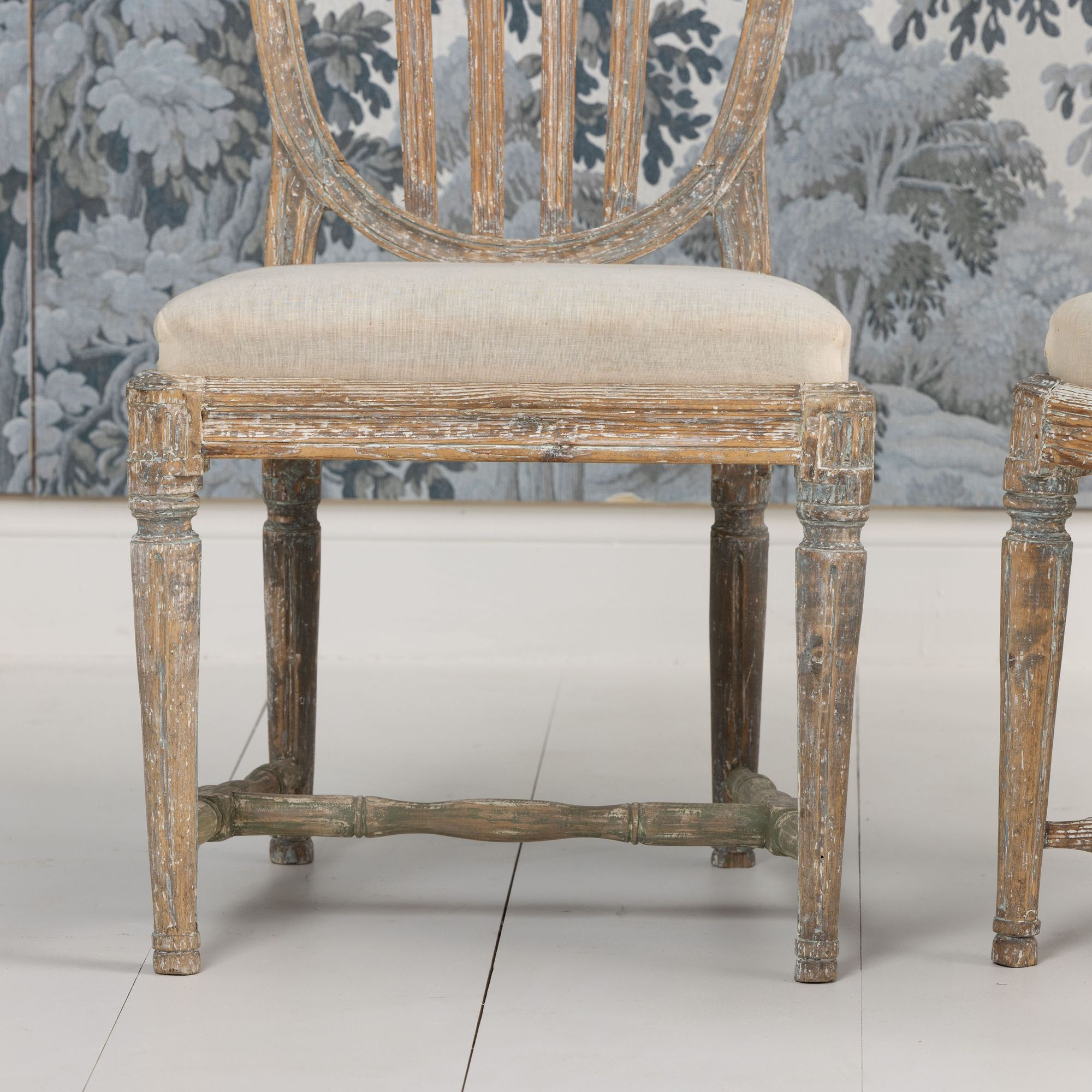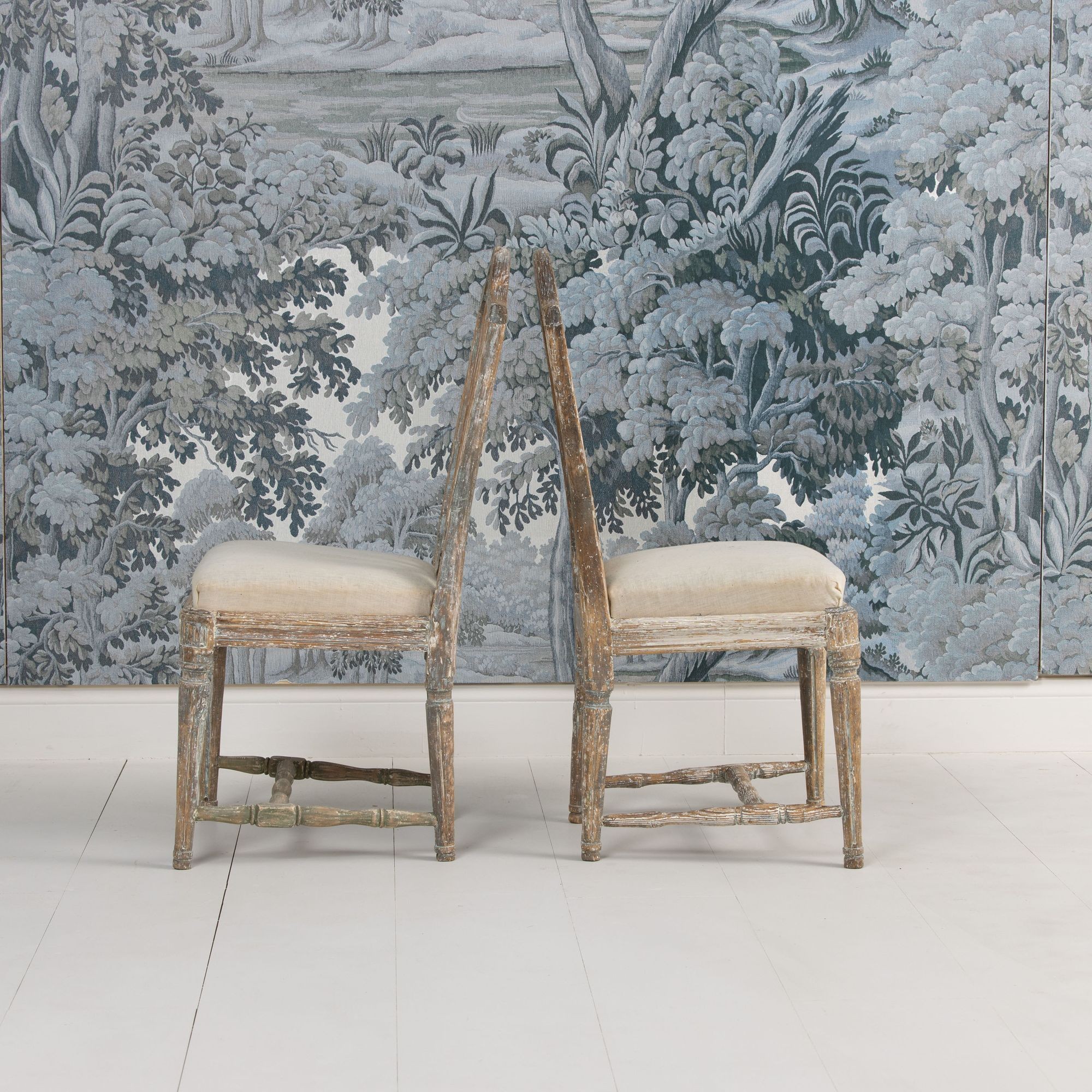 Pair of 19th c. Swedish Gustavian Period Shield Back Chairs in Original Paint